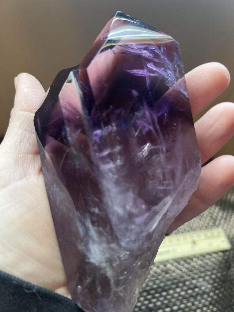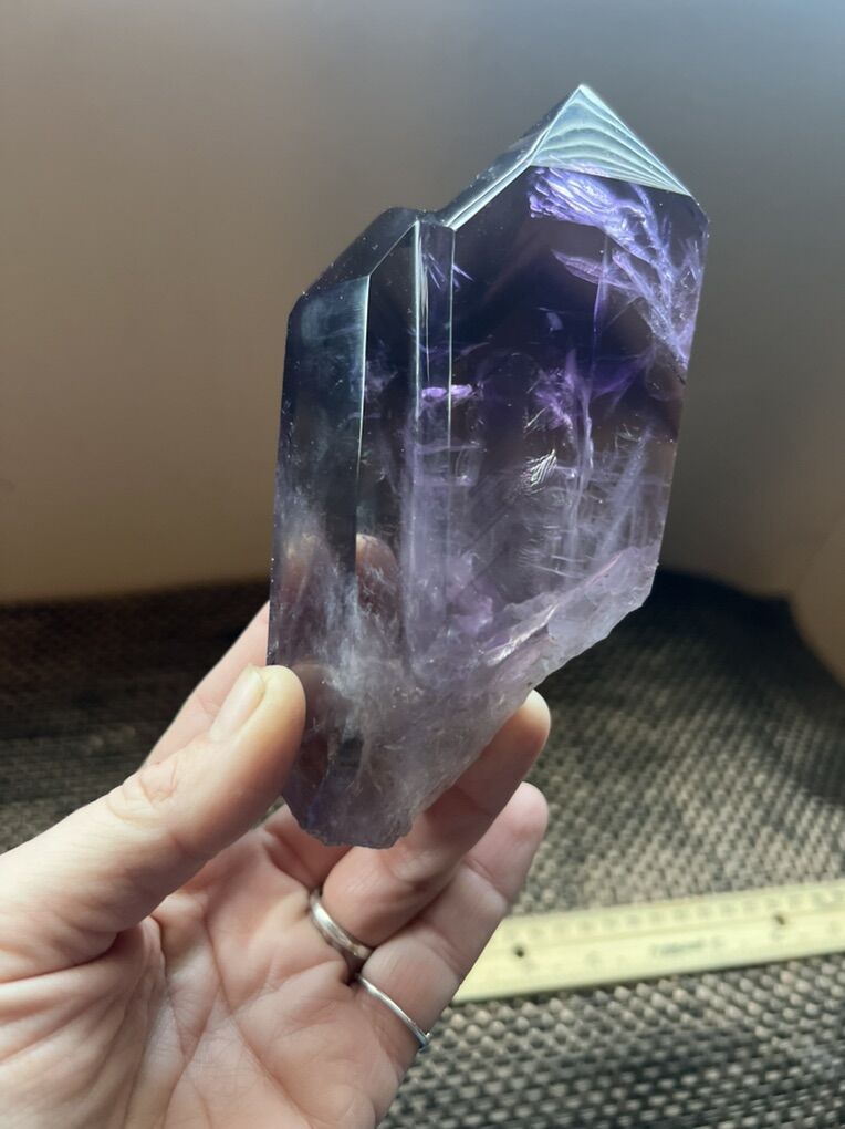 ApplePay394G Natural Amethyst Quartz Crystal Single-End Terminated Wand Point
