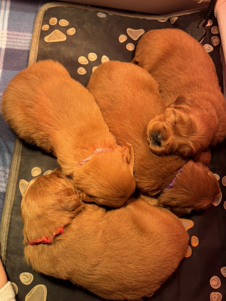 Pups: Born 11/8/2025 Estimates to be 25-35lbs Intense Red coats Hypoallergenic (minimal - seasonal shedding) Emotionally intelligent, Confident, and playful, cuddly, and quick learners