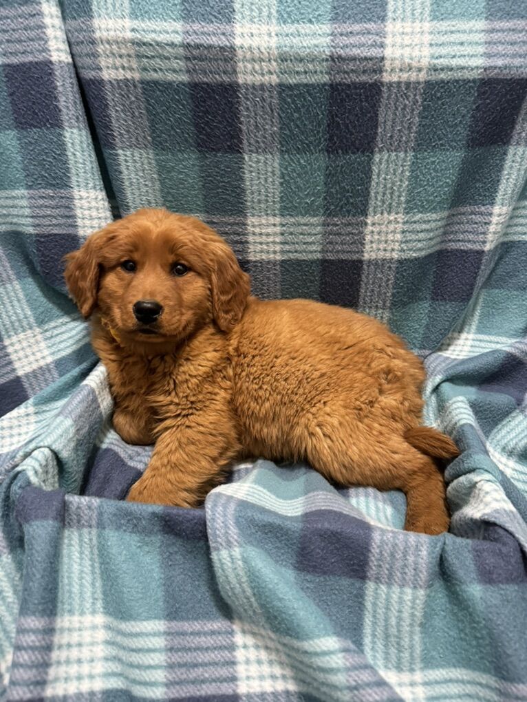 Romeo (dad) is a 42 lbs mini golden retriever with a rare low/no shed gene. He is everything you love about the goldendoodle “hypoallergenic” coat but looks like a red golden retriever. He is very fun, happy and playful!