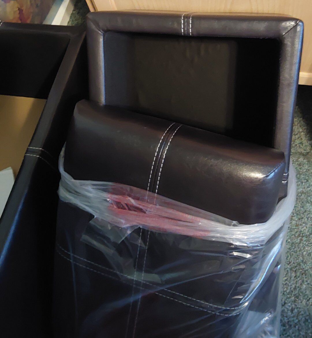 Brand New Brown leather chair , swidles asking $50.00 for chair. 2 in 1 Brand new Brown leather Ottoman never used asking $45.00 Or $90. for both