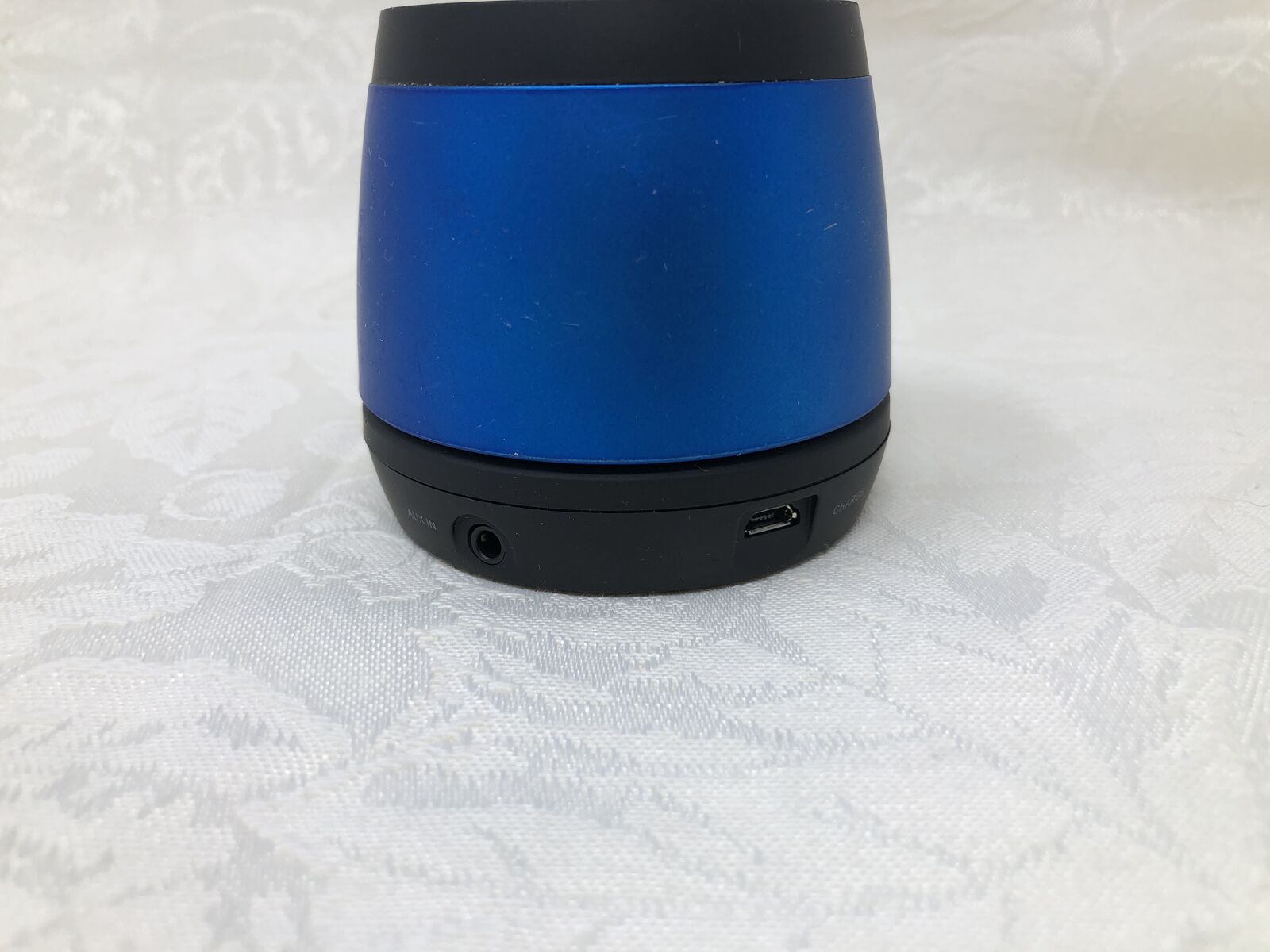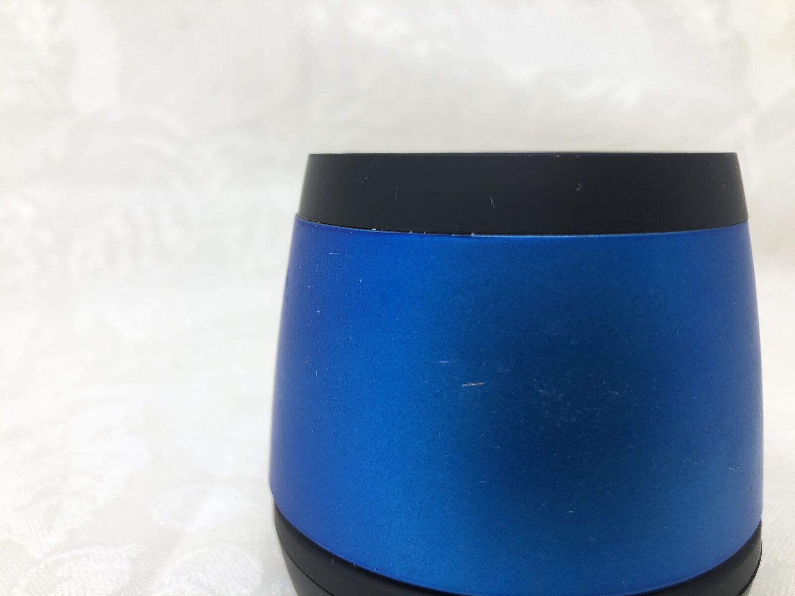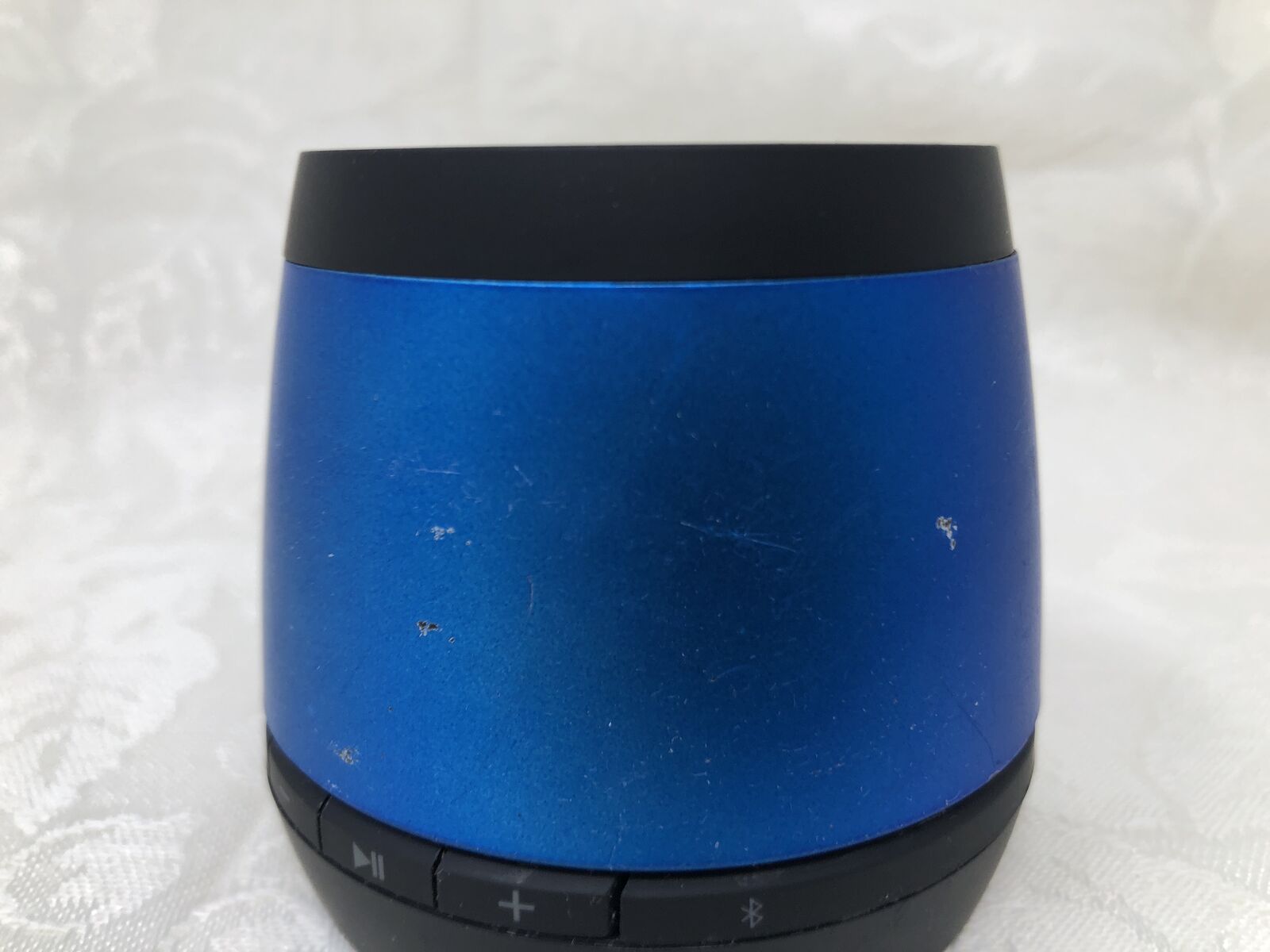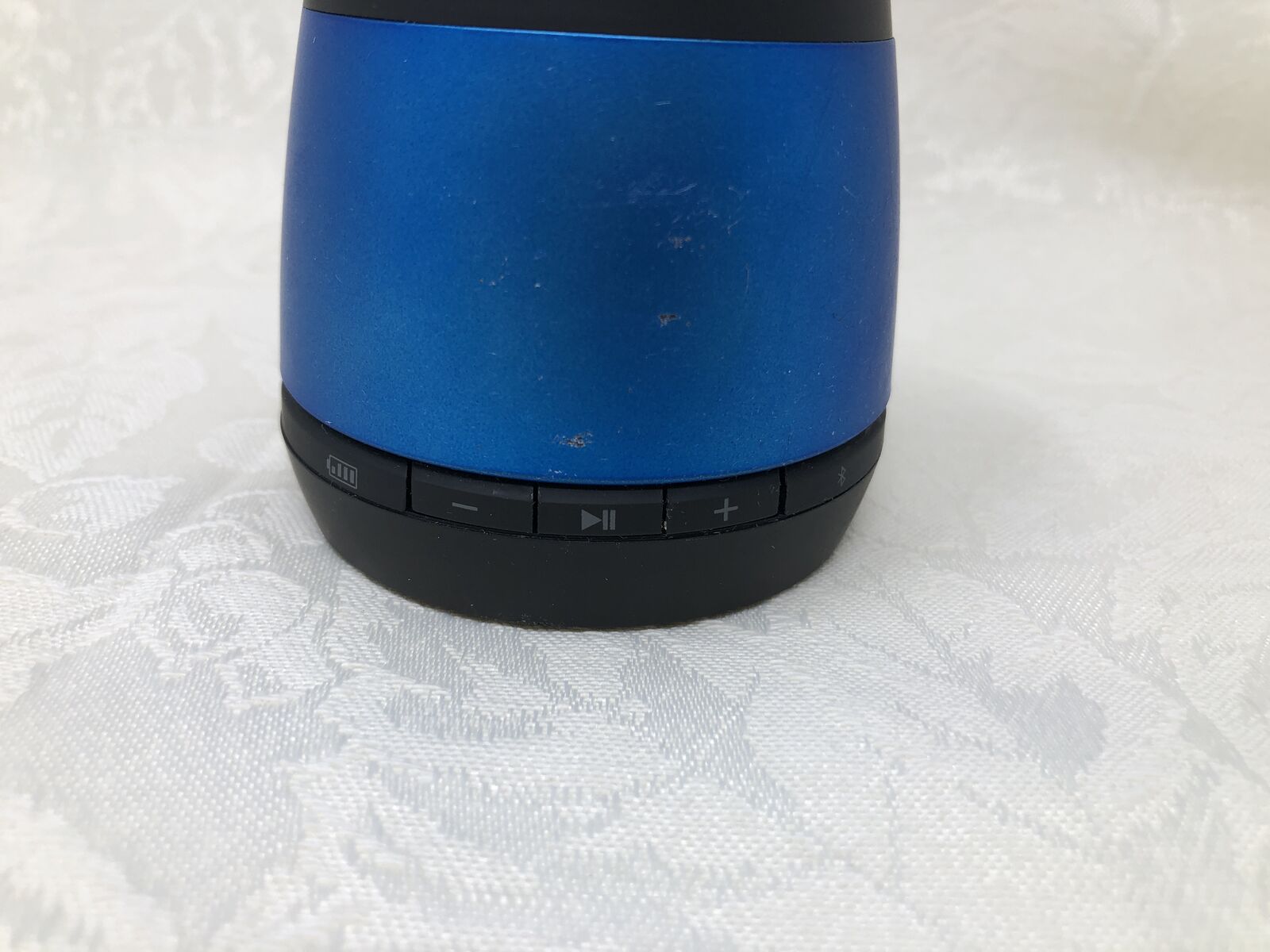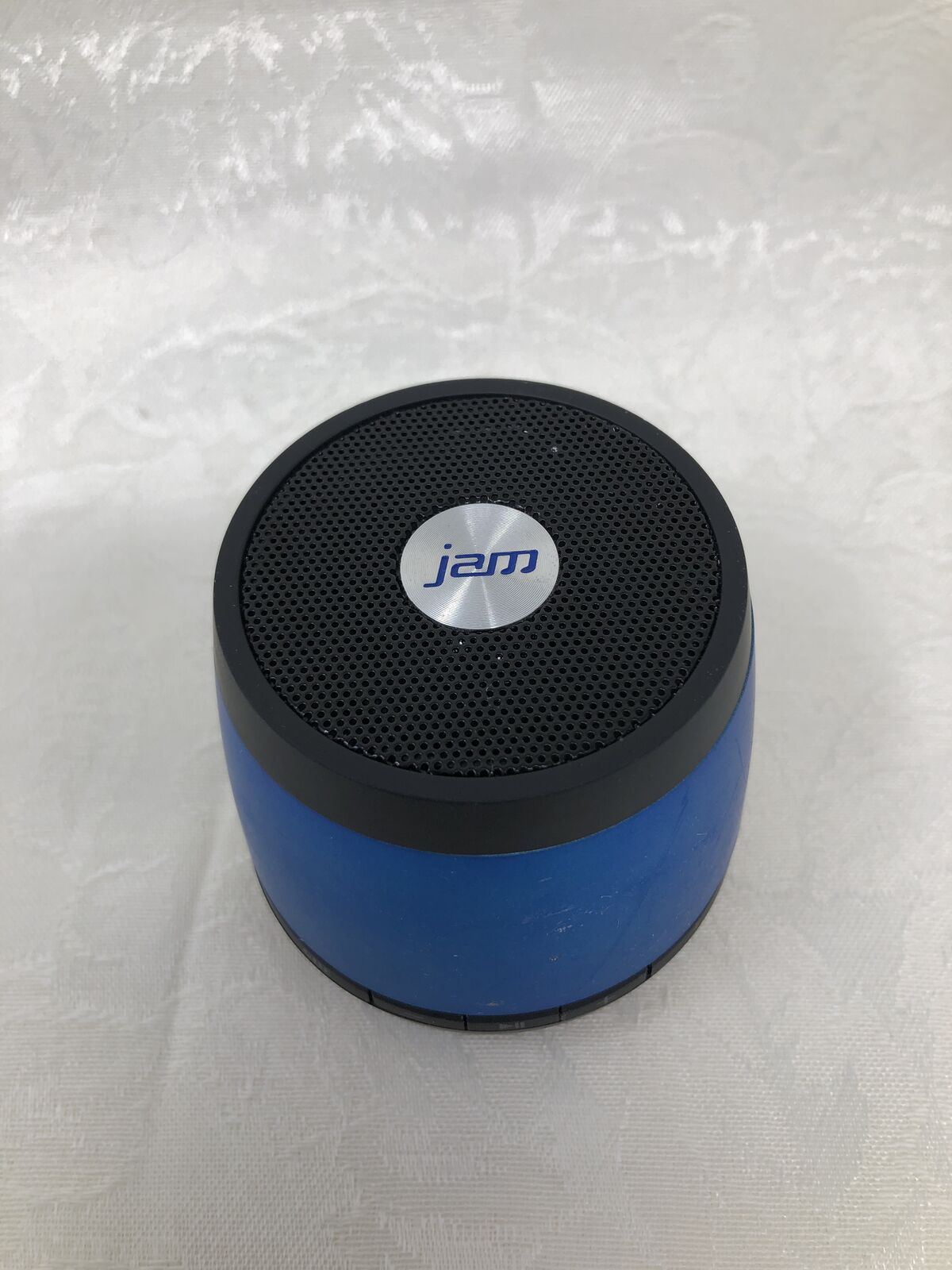 VenmoJam portable Bluetooth speaker in blue. Speaker has been tested and is fully functional with clear sound. Compact size makes it great for desks, bedrooms, or travel.