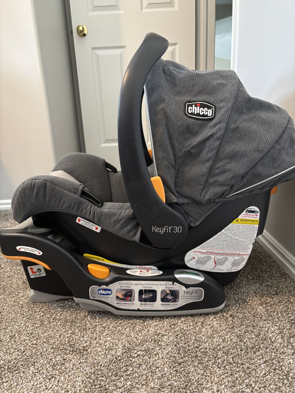 ApplePayLightly used for approximately 9 months. Very clean, no damages, never involved in an accident.This car seat is designed for infants between 4-30 pounds and up to 30 inches tall. JPMA certified. 5-point harness with one-pull tightener. RideRight TM bubble level-indicators. Expiration date is September 2026.