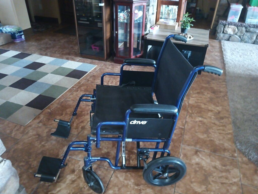 this is a heavy duty wheelchair made by drive it's ready for up to 350 lb it also comes with the leg attachments for legs and feet hardly been used folds up really well and it's very portable asking $150 or best offer cash only