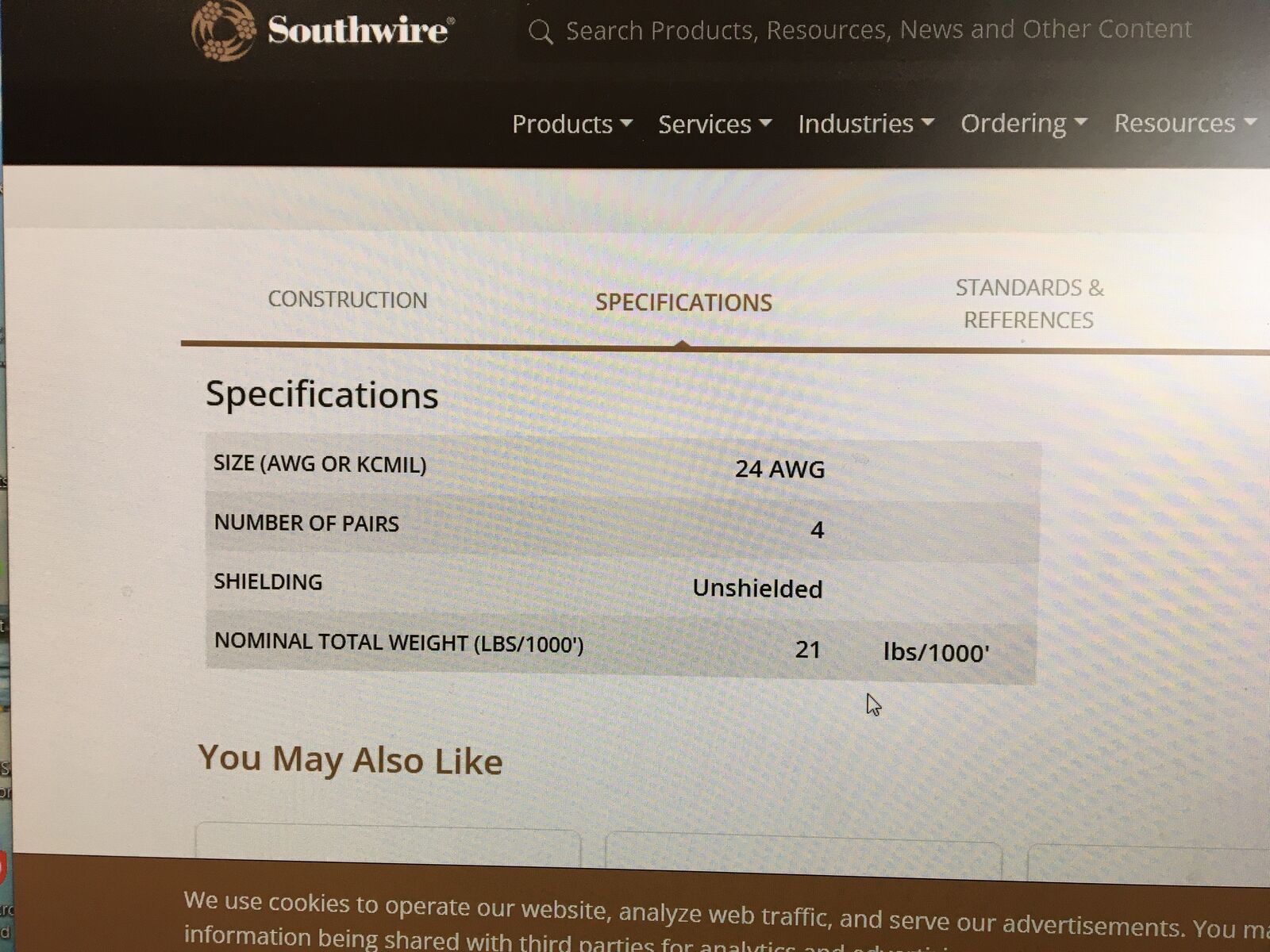 This weighs 12.75 pounds including the box, their website shows the weight of a thousand feet at 21 pounds. That's why I estimate it at over 500 feet.