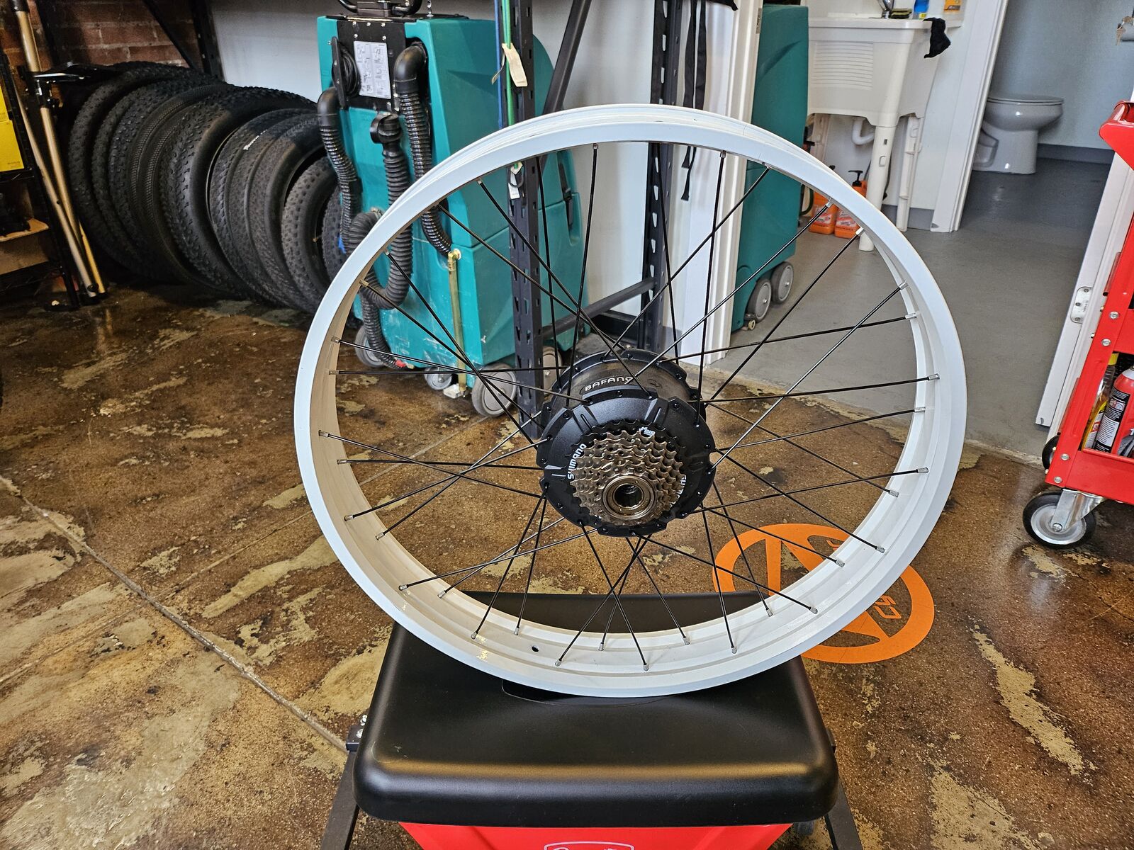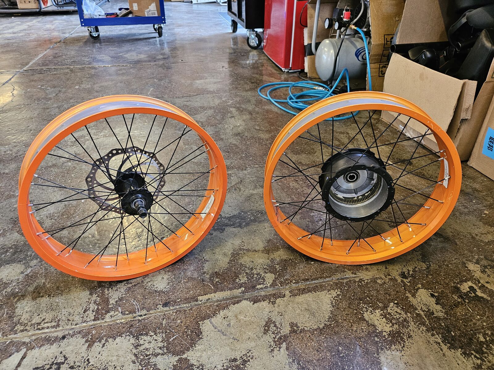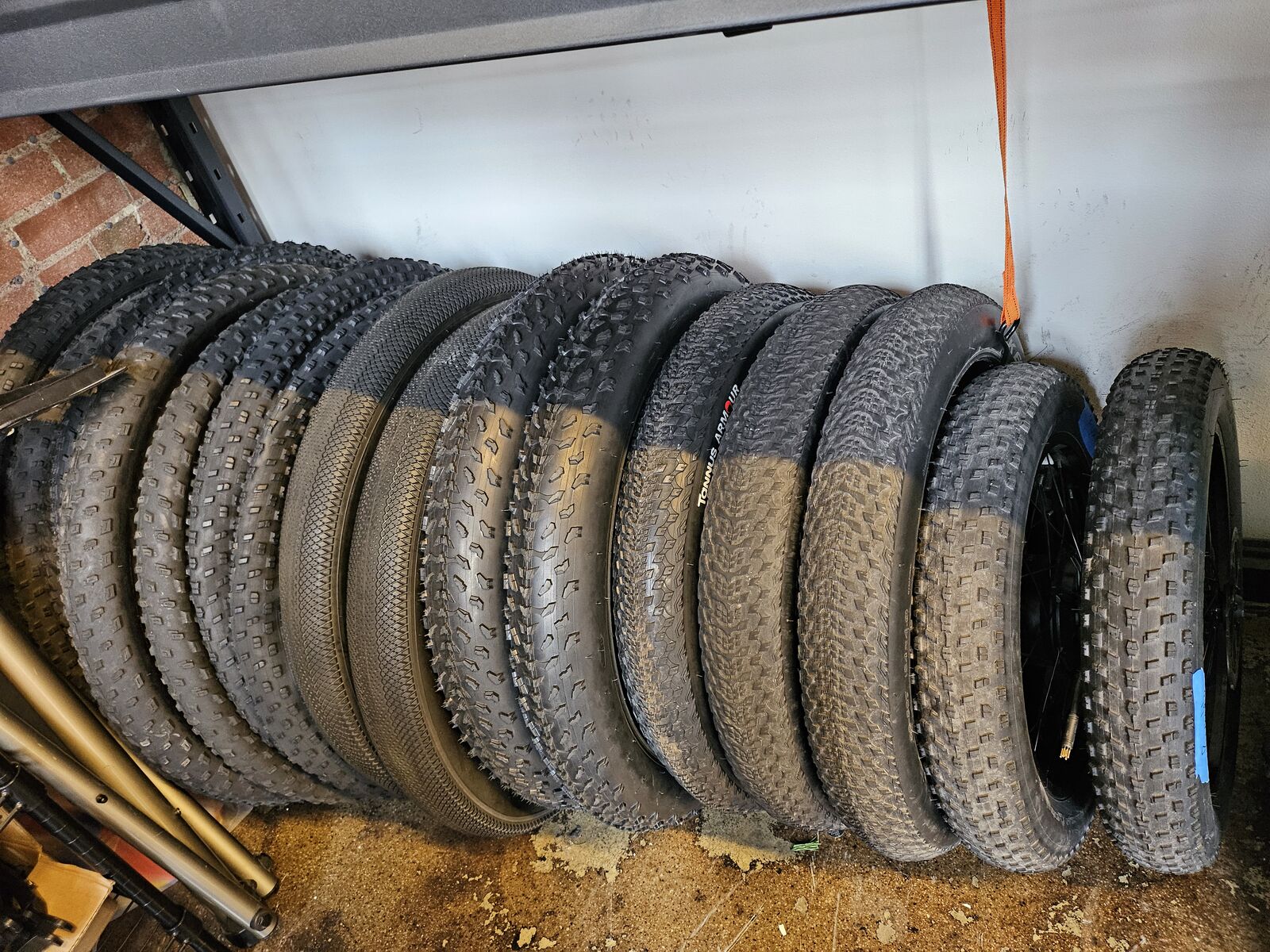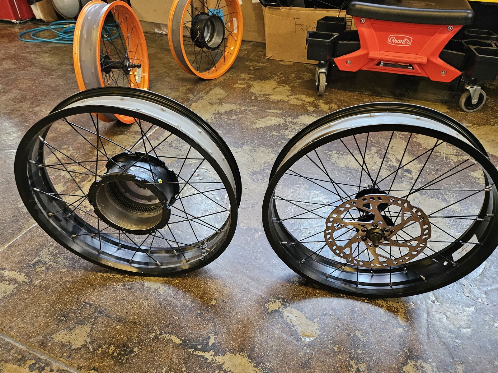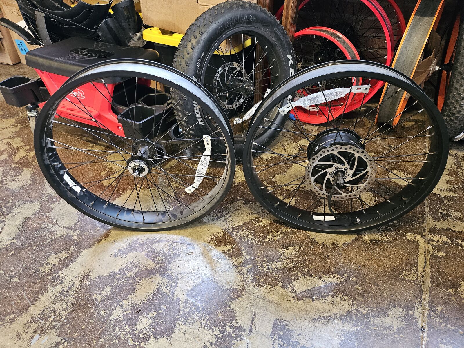 4" Fat tire ebike rims and treads. Some are slightly used, and some are new. Rear ones will fit Bafang motors.