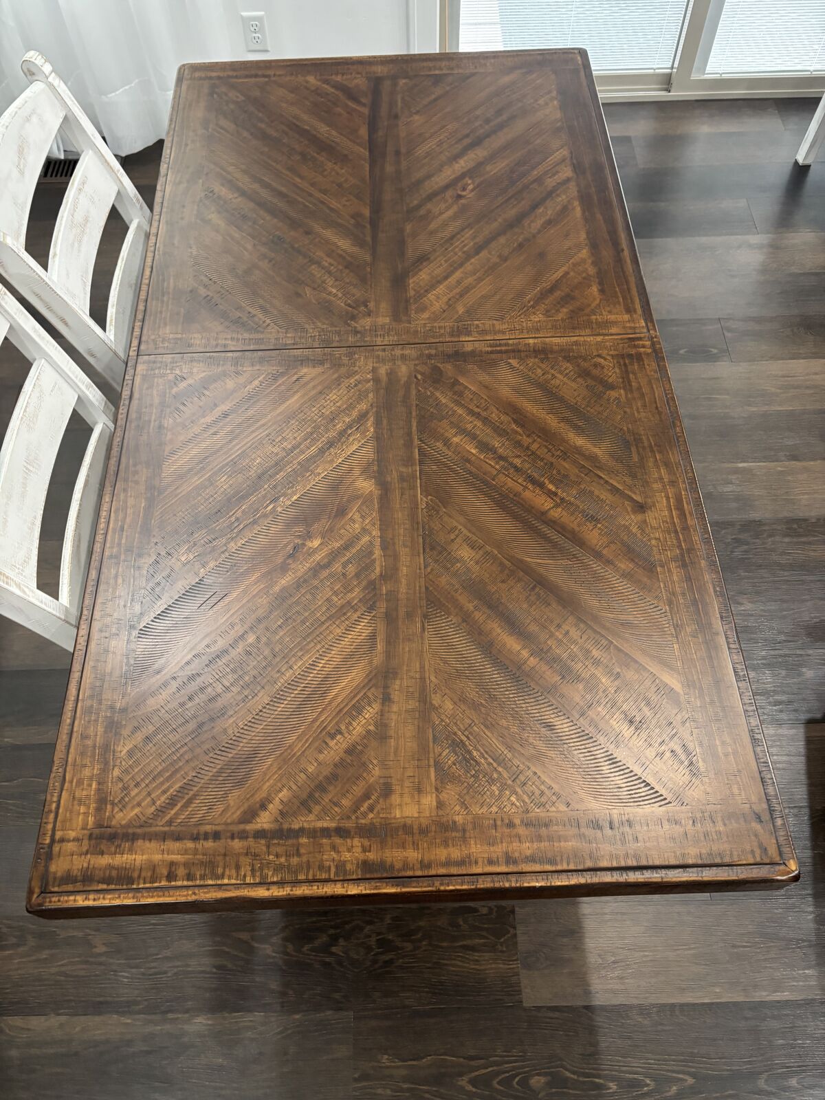 Ashley Furniture Valebeck dining table with six chairs and leaf. Table and chairs are in like new condition, has only been used one time. Table is 69.5"L, 36"W and 30"H, leaf adds another 16.5". New from Ashley's is $1499.99 plus assembly and tax. Call or text NO EMAIL.
