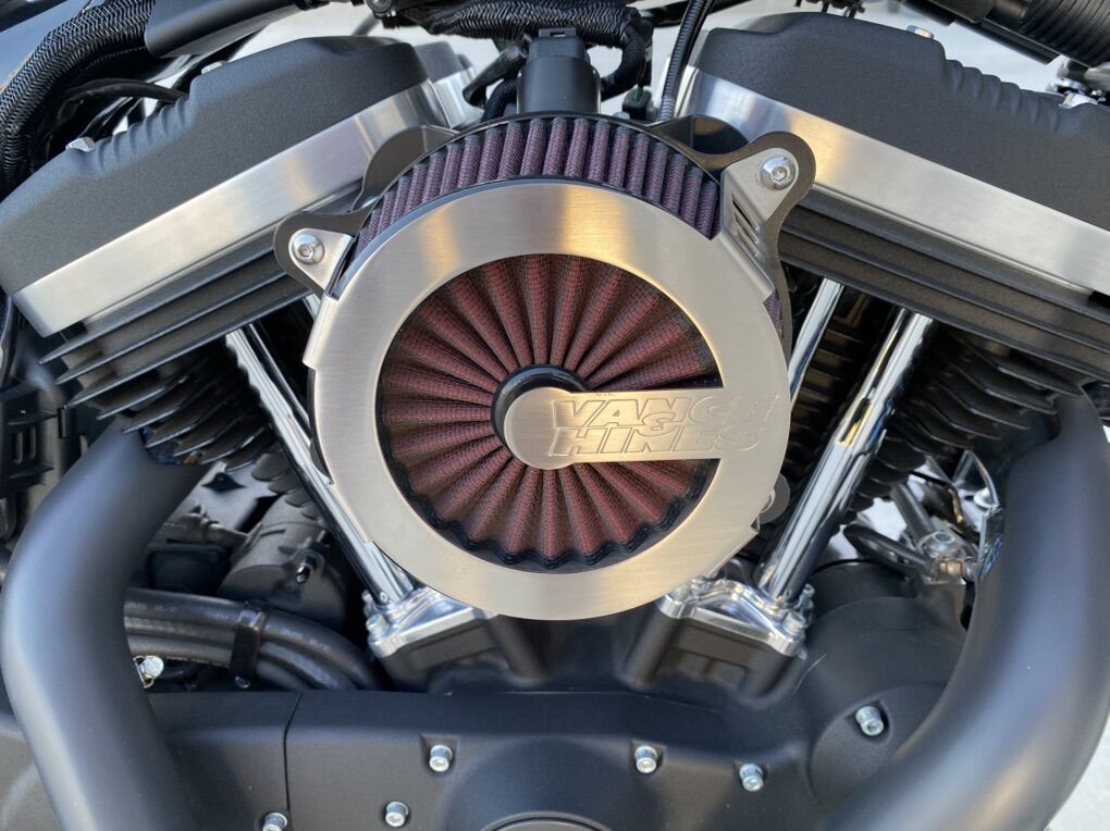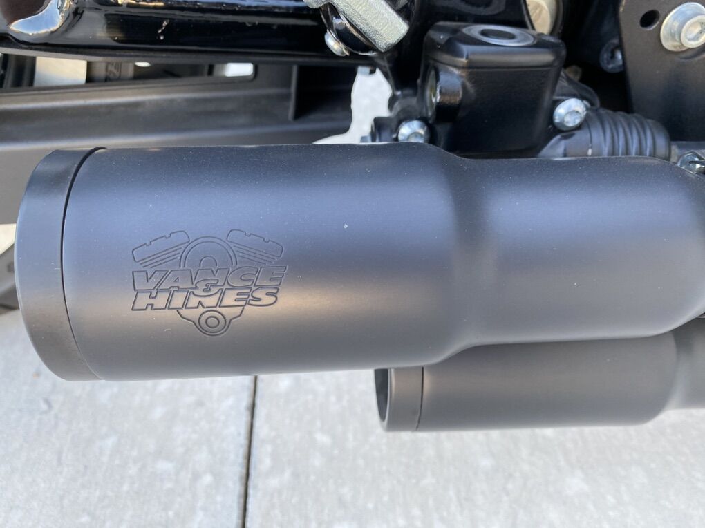 Vance & Hines Grenade exhaust Vance & Hines air filter Harley-Davidson digital oil temperature gauge Harley-Davidson upgraded pegs + peg adjustment kit Dunlop whitewall tires Drag Specialties adjustable rear shock Progressive Suspension front fork springs Upgraded LED headlight, blinkers, and rear tail lights Upgraded engine covers Harley-Davidson seat upgrade Front fairing…and more!