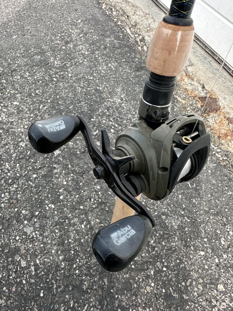 7’ Ugly Stik Lite Pro spinning rod with Abu Garcia Vengeance left hand retrieve reel.