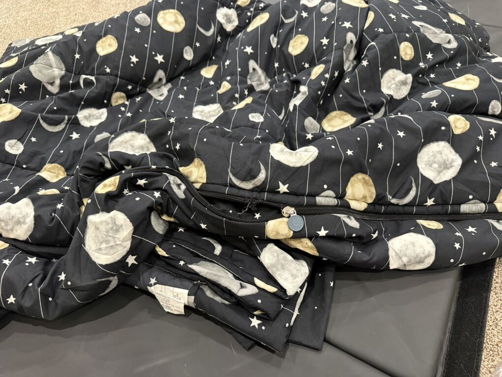 Has 2 shams and 2 cases, item number JAN71. Broken zipper on right side if laying in bed about half way up.