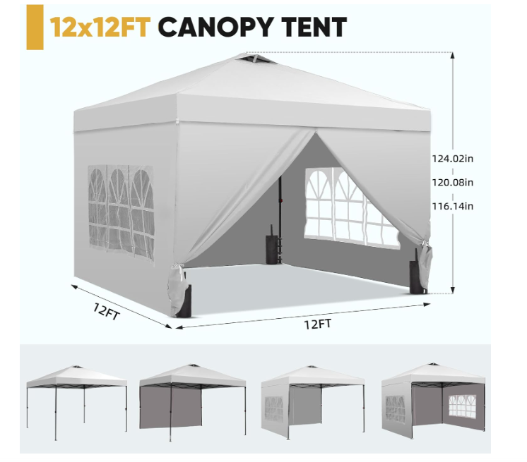 ZelleUV Protection and Waterproof: This basic 12x12 ft (approx. 3.6x3.6 m) quick-setup outdoor tent lets you enjoy the outdoors without fear of harsh weather. The tent cover is made of premium 420D Oxford silver-coated fabric, specially reinforced to withstand extreme weather conditions. It's not only waterproof but also effectively blocks 99% of harmful UV rays.