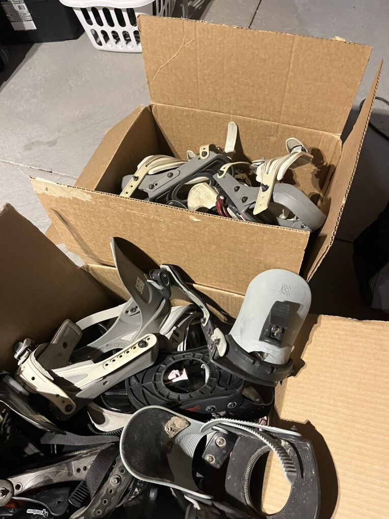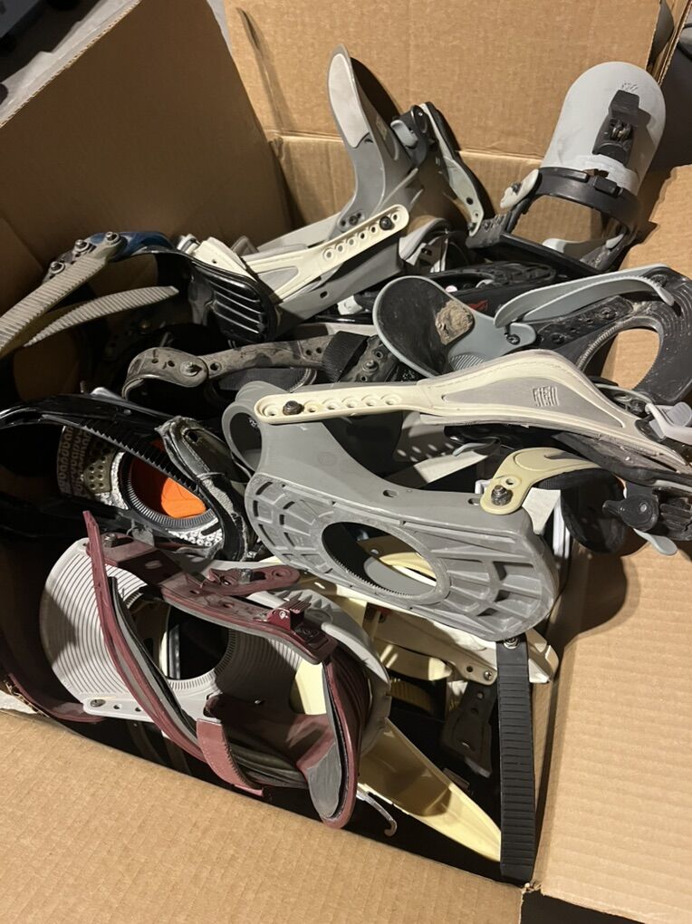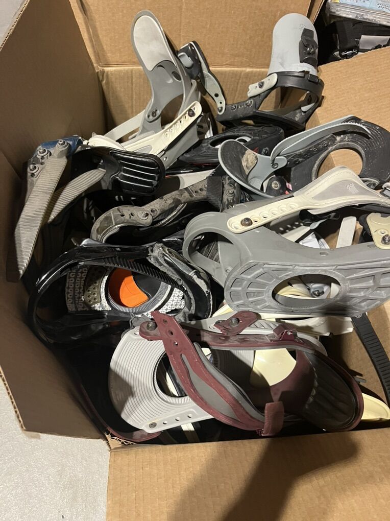 2 boxes of older bindings, great for Parts are fixing odds and ends, no pucks. Located in Saratoga Spgs.