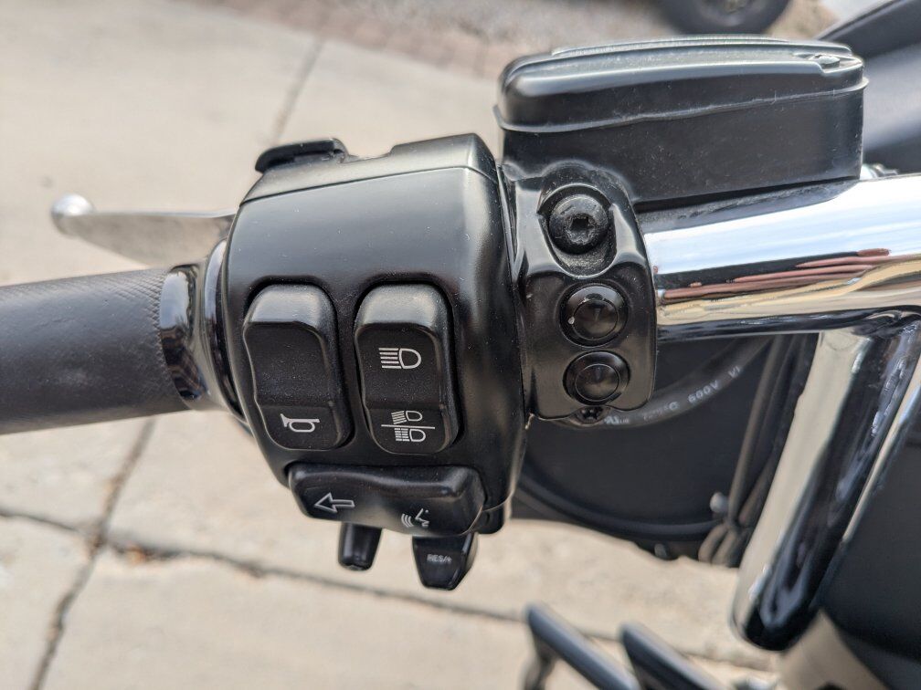 JNR Air Ride suspension in rear. Switch on the bars allows you to raise and lower the back end has an air compressor mounted behind the saddle bags