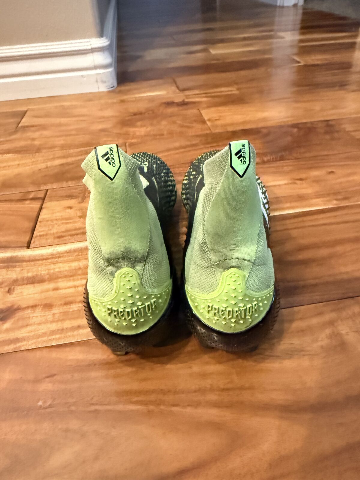 VenmoThis is a pair of laceless Adidas Predator Mutator 20+ Firm Ground (FG) soccer cleats in the "Signal Green/Footwear White/Core Black". They are men size 6.5 and women 7.5.