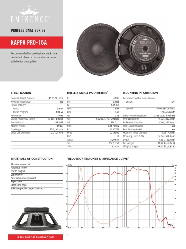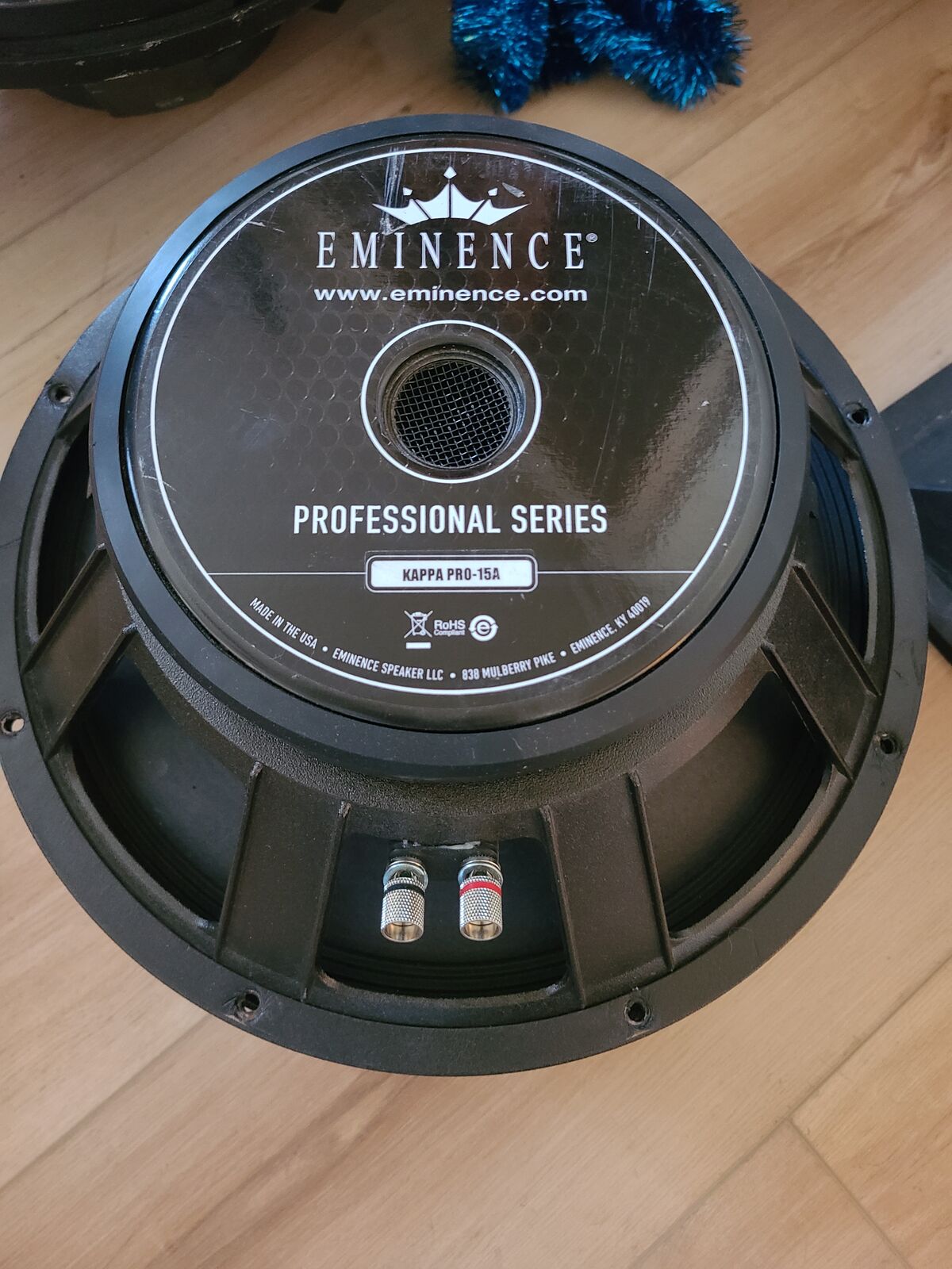 PayPalEminence Kappa Pro 15A. Like new, these have less than 2hrs play time. Ideal for upper mid bass, bass gutair, bass horn loading, or voice wedges. I paid $175ea since I bought two from a Eminence dealer friend, my loss, your gain. Reatail is $184.99ea