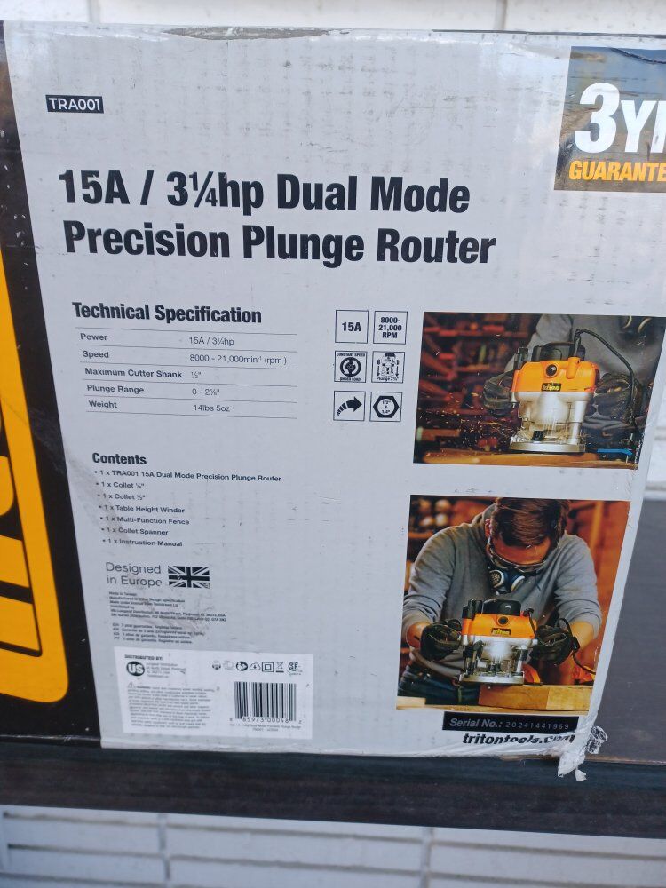Triton 15 amp/ 3 quarter horsepower dual mode Precision plunge router item number tra001 brand new any questions please message me