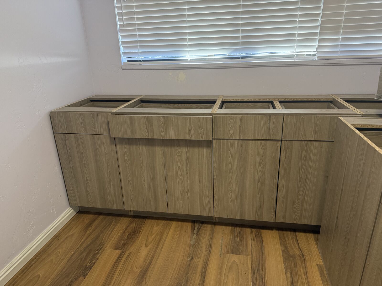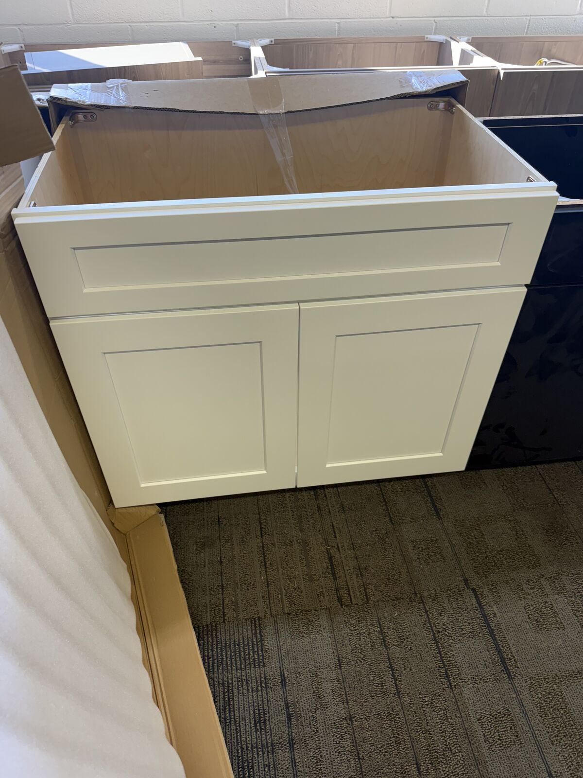 New white shaker bathroom cabinets - sink base - No toekick