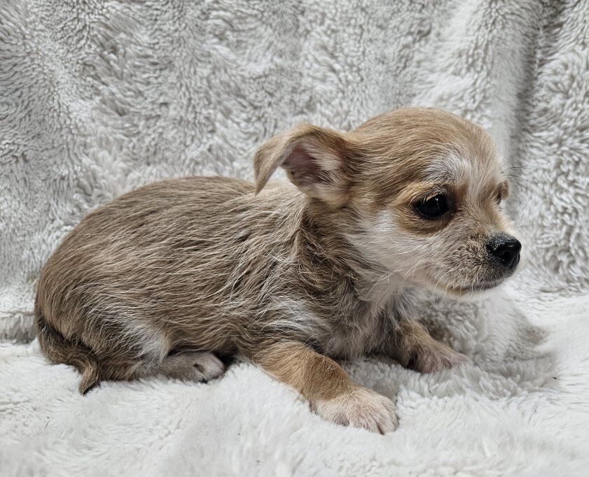 ZelleCuddly and playful Chihuahua Yorkie mix (a bit Yorkie). So adorable and cute! Check up at the vet at 6 weeks, all healthy! Born Dec 5th. Ready to go home, eating solids, yummy rice with meat! Lot of socialization with our children. Love to cuddle and chase.