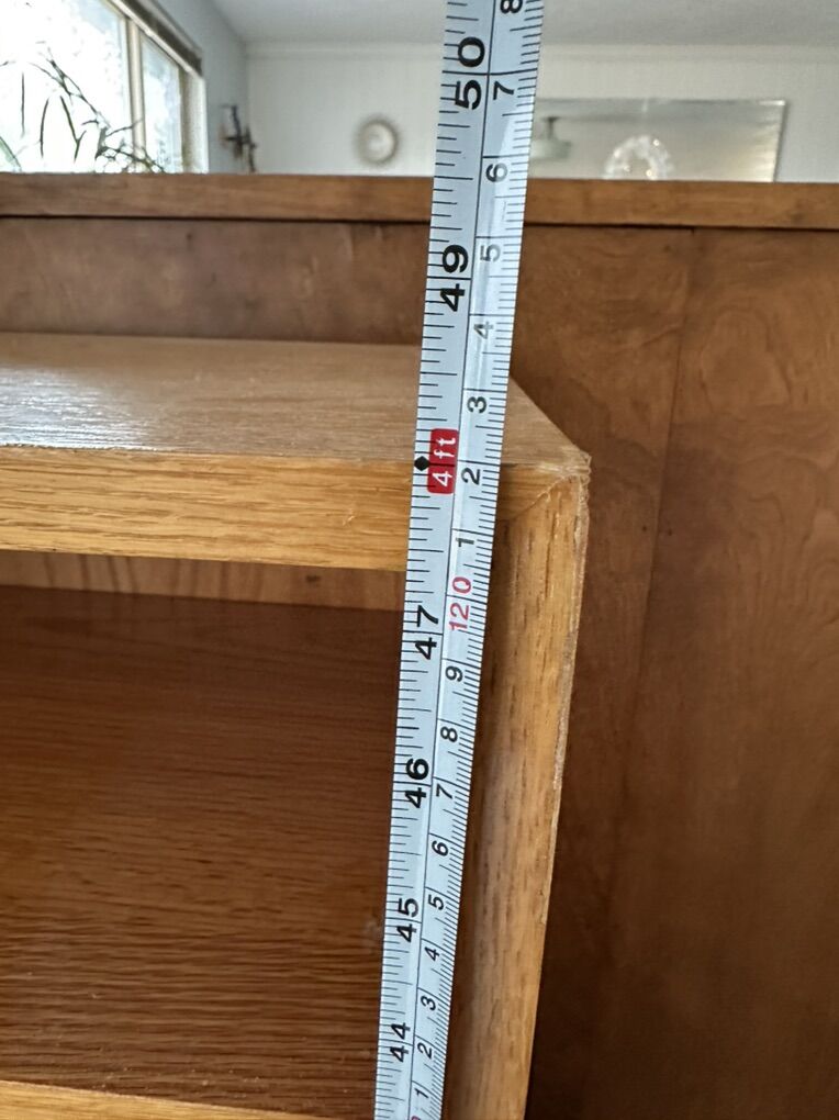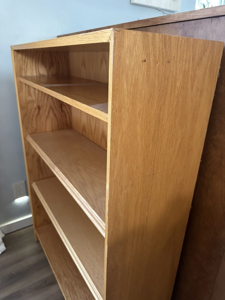 VenmoOlder bookcase. Sturdy and good looking. All three shelves are adjustable. 4’ tall 3’ wide 11” deep