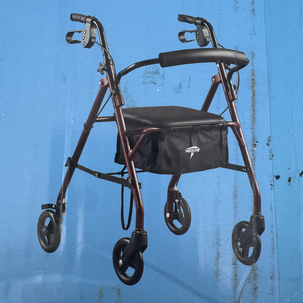 VenmoMedline Steel Rollator Walker with Seat, Burgundy, 350 lb.