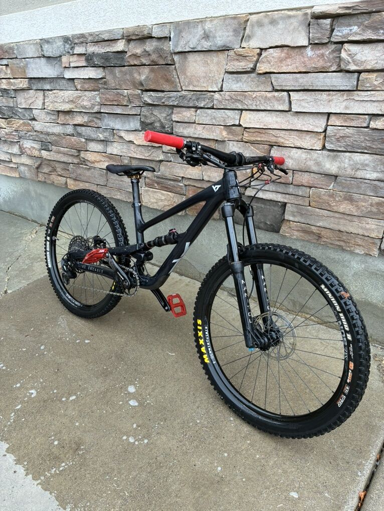 This bike has been awesome for trail riding, jumps and tech. It’s sad to let go of it because it’s too small for me now. It’s in great condition with a serviced fork new sealant and great parts. specs- Manitou fork 140mm Rockshox shock 145mm Sram SX drivetrain Sram Guide 2 piston brakes Fox transfer dropper post and lever 125mm Sun Ringle 26 inch aluminum wheels Size xs frame Great for riders from 4 foot 9 to 5 foot 2