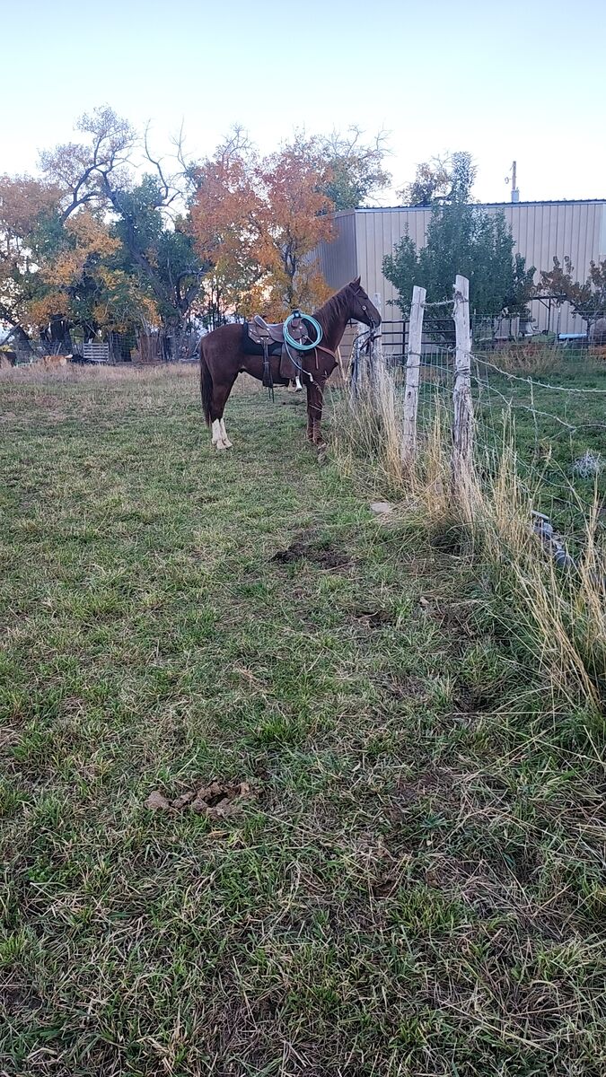 He's good when your on him and hes a really good ride in the mountains you can rope off of him he handles cows good. He is hard to catch and he hates his ears touched but he is getting better with that hes a good trail horse and pack horse. He is 3 years old and is 15hh. Grade. asking 2500 text 435-262-7915