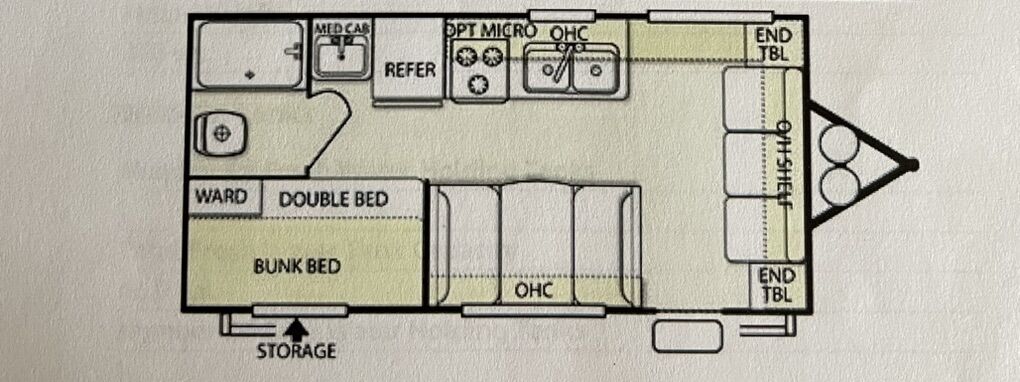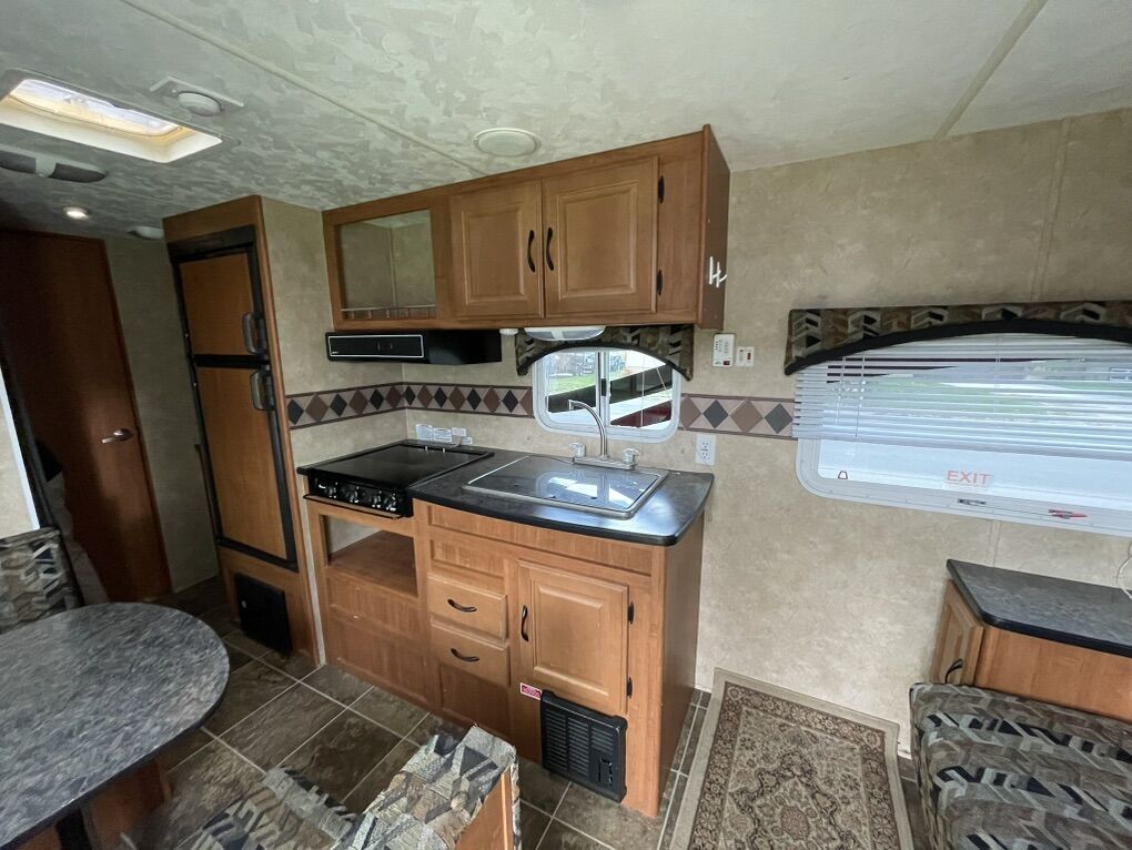 VenmoReady for your next adventure! This camper can easily get into smaller places and is easy to pull. Sleeps 4-5 with bunks, table bed, and couch pullout bed.