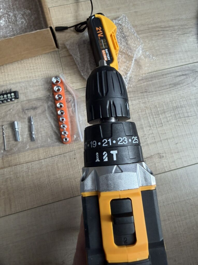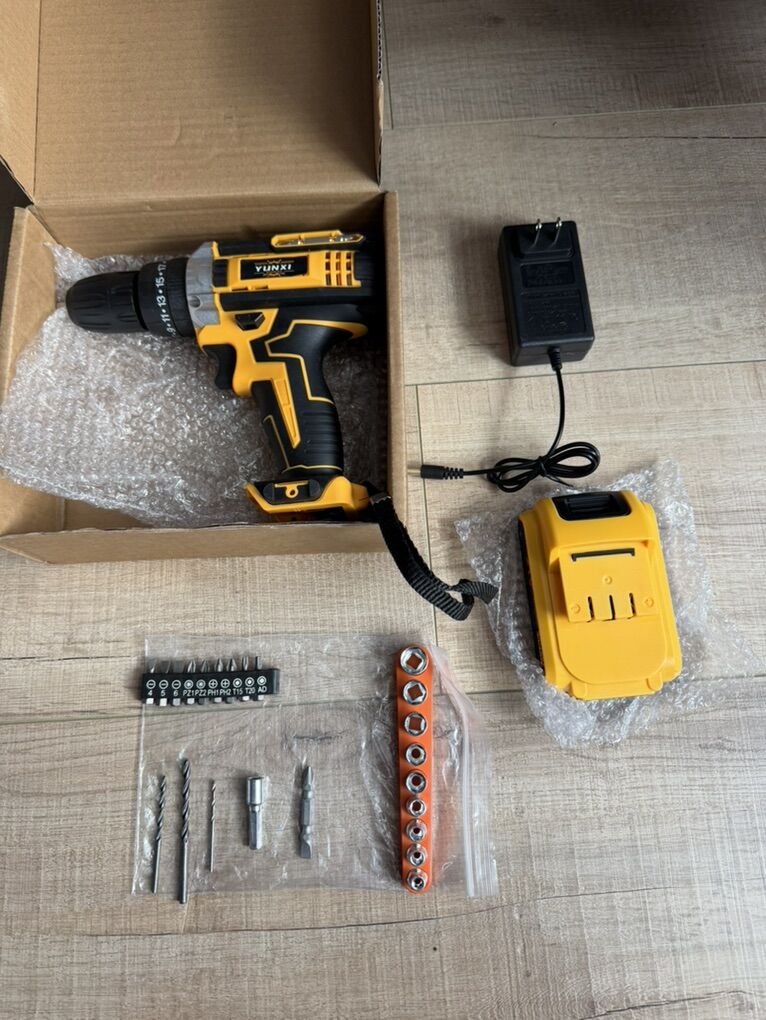 Cordless Drill Tool Set 21V Electric Power Drill with 1.5Ah Lithium-ion Battery Charger Portable All-in-One DIY Home Toolbox Kit with Work Light.