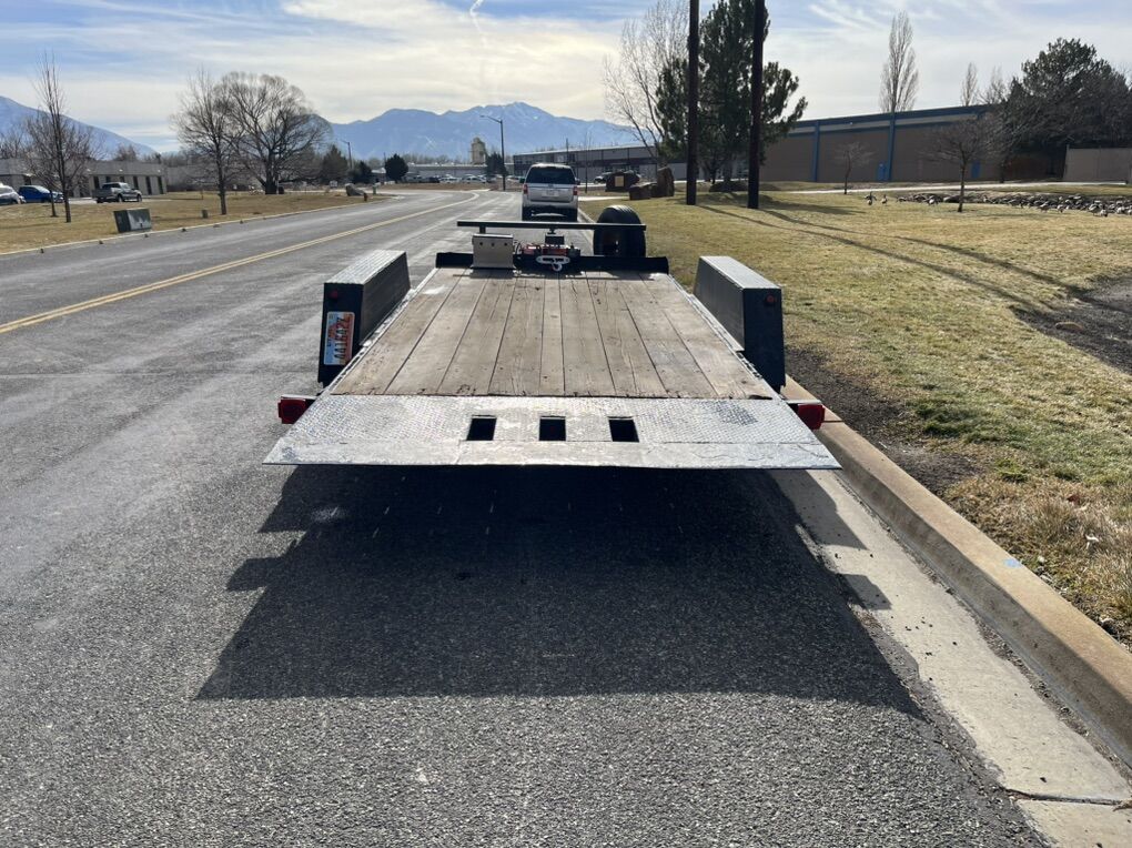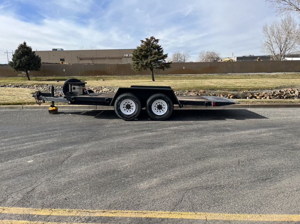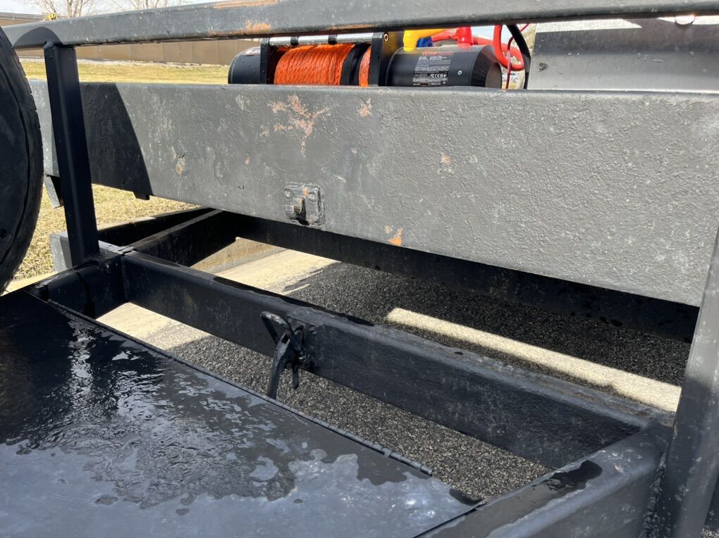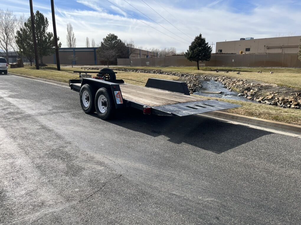Our 16 ft Tilt Deck trailer is built for efficiency and convenience. With a full-length tilt deck, you can quickly and safely load equipment, vehicles, or other heavy items without the hassle of ramps. All with an electric winch included!
