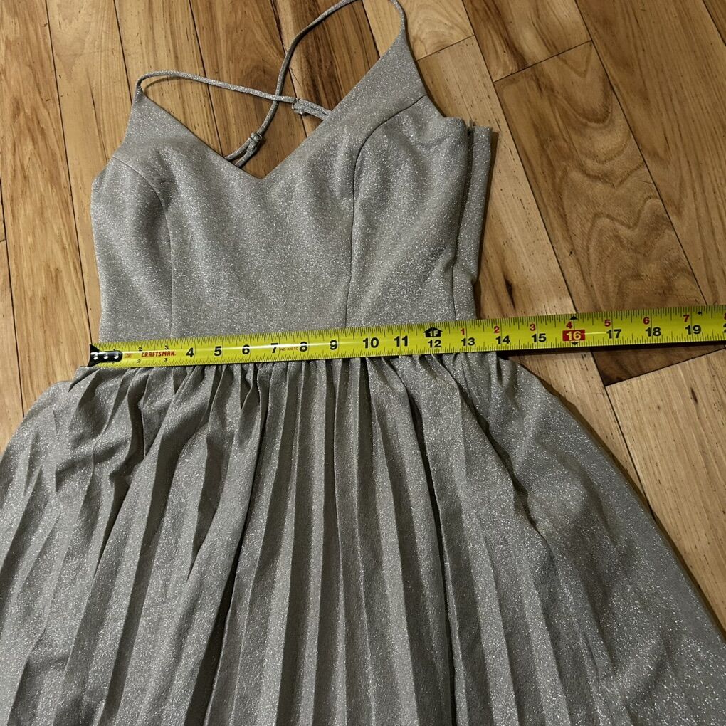 Elevenses by Anthropologie Lunar Pleated Midi Sleeveless Formal Dress - Sparkle Metallic Silver Grey - Women’s Size 4 - with attached slip, adjustable straps for flexible fit and hidden side zipper closure - great condition - pre-owned.