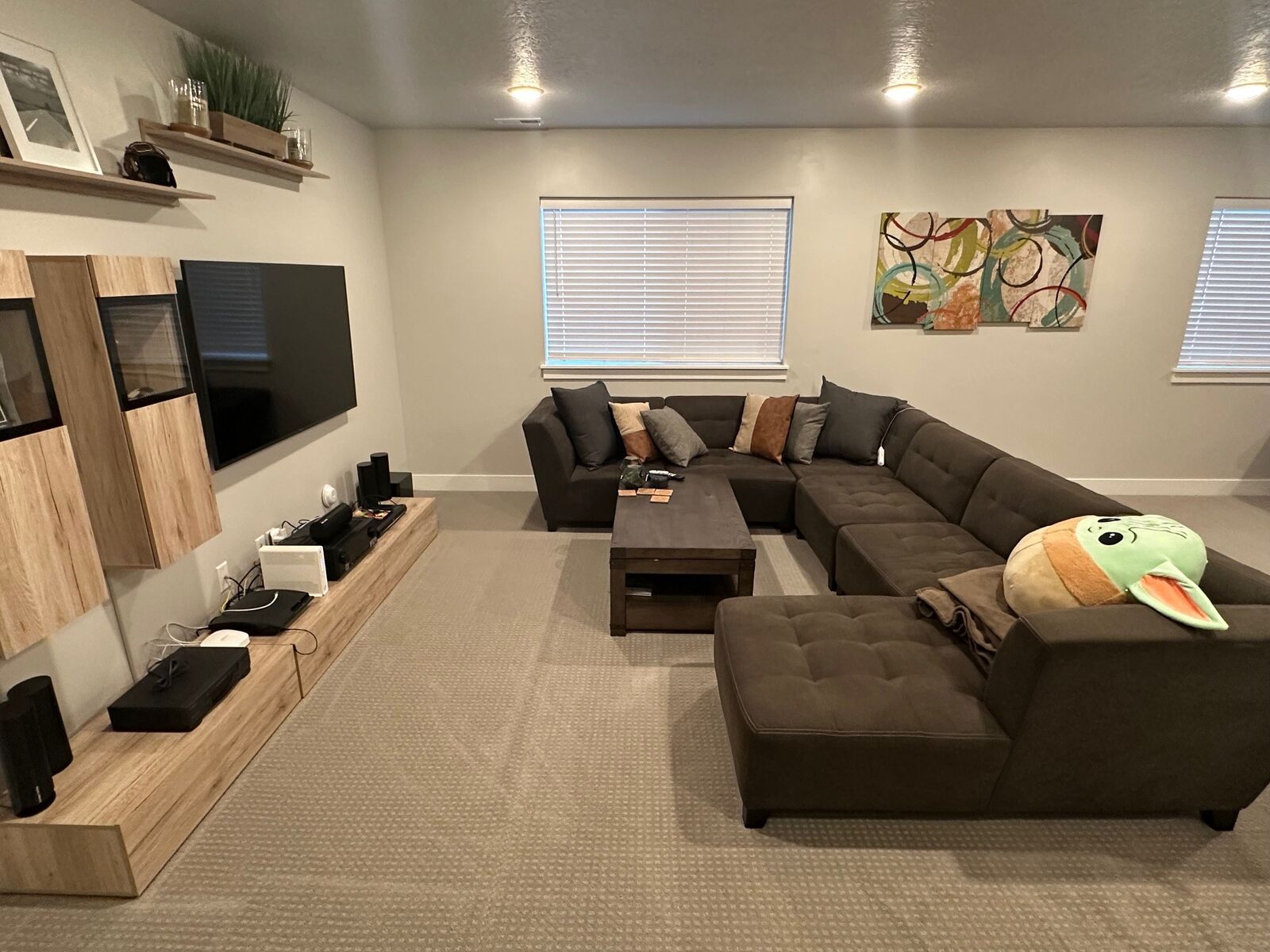 Room & Home Features: Private basement bedroom Large closet Carpeted floors Private bathroom Access to hot tub Private parking spot Washer & dryer in home Shared kitchen and living space