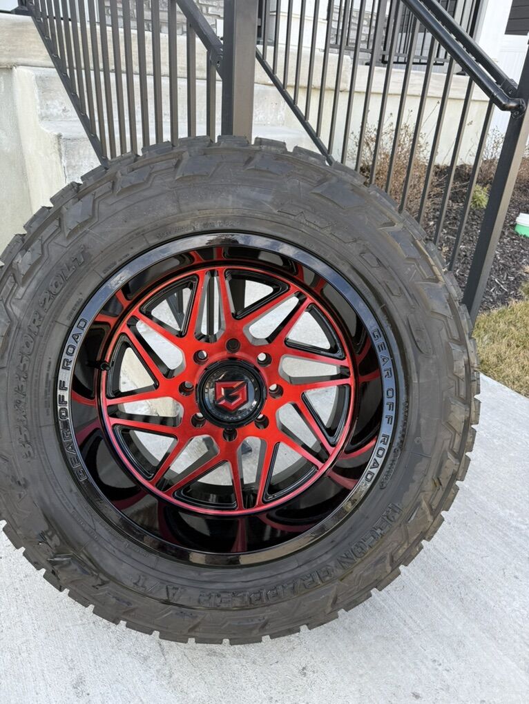 ApplePaySet of 4-Ford F350 Platinum Rims And Tires 275/65R20 Big O Big Foot AT in great condition asking $2100 obo Tires are like new only 2000 miles on them Rims are new only 100 miles Comes with lug nuts and center caps and sensors I can sell the rims or tires separately Bolt pattern 8-170 They will fit ford f250- f350 from 1999-2026 Text anytime 385-402-2292