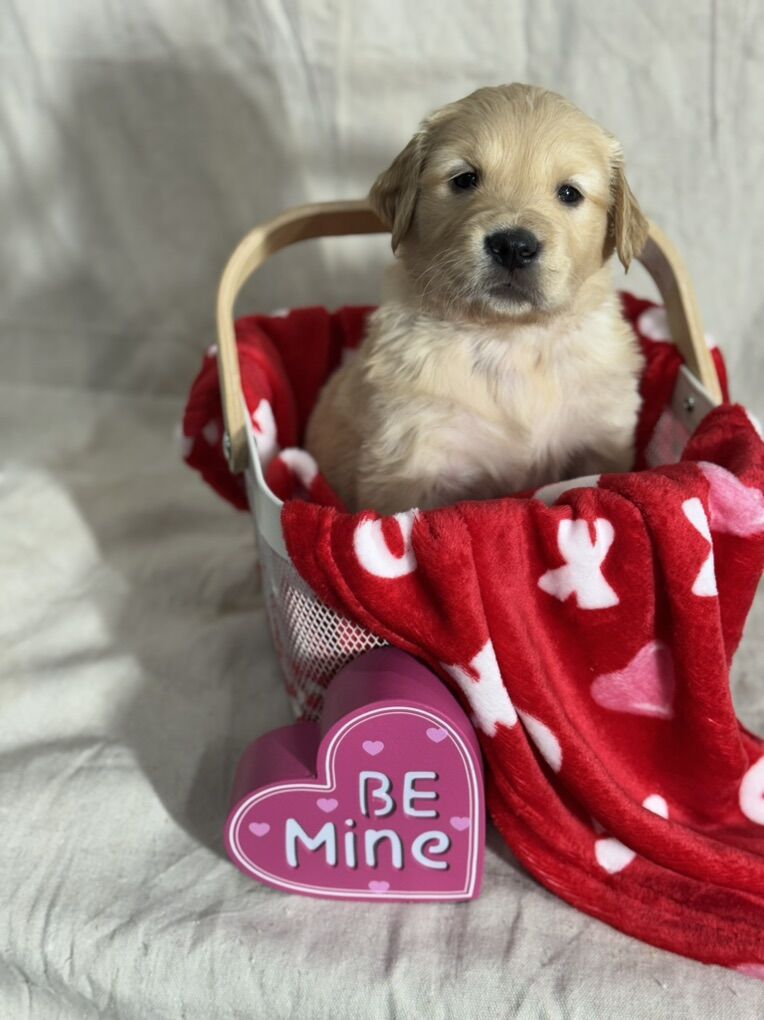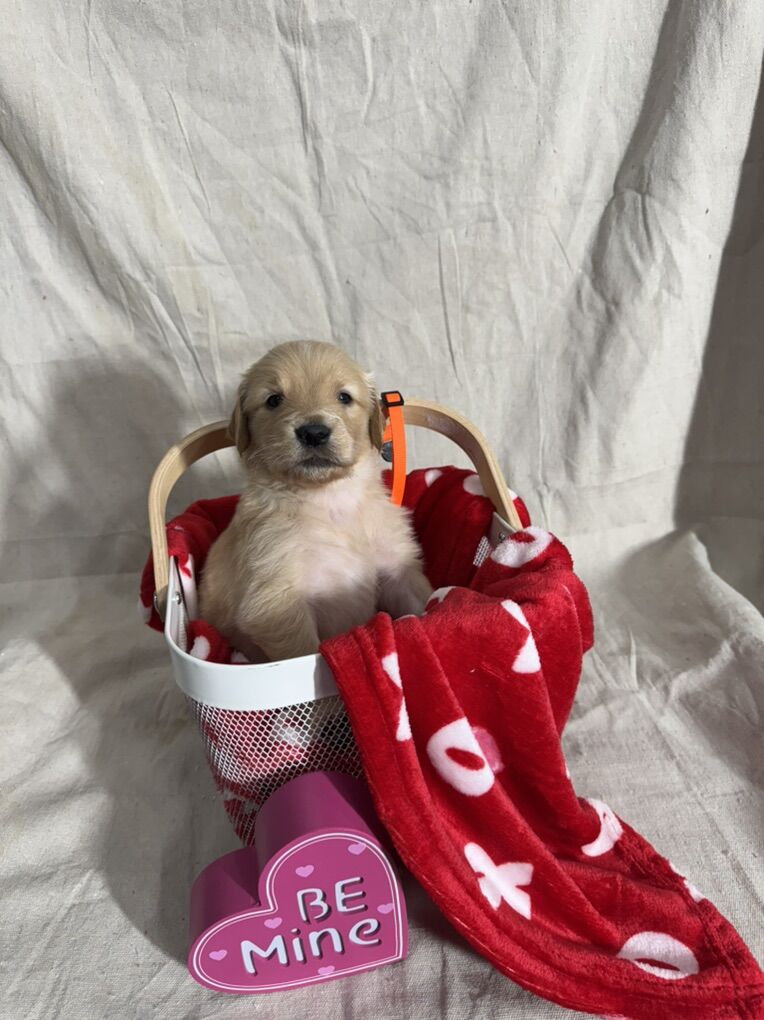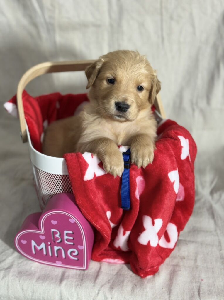 Dad has that blocky head, beautiful lightly toasted coloring and that loving personality that goldens are famous for. He also has shown great instinct and sense with the outdoors and hunting, meanwhile is a wonderful family boy too.
