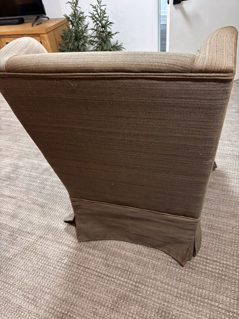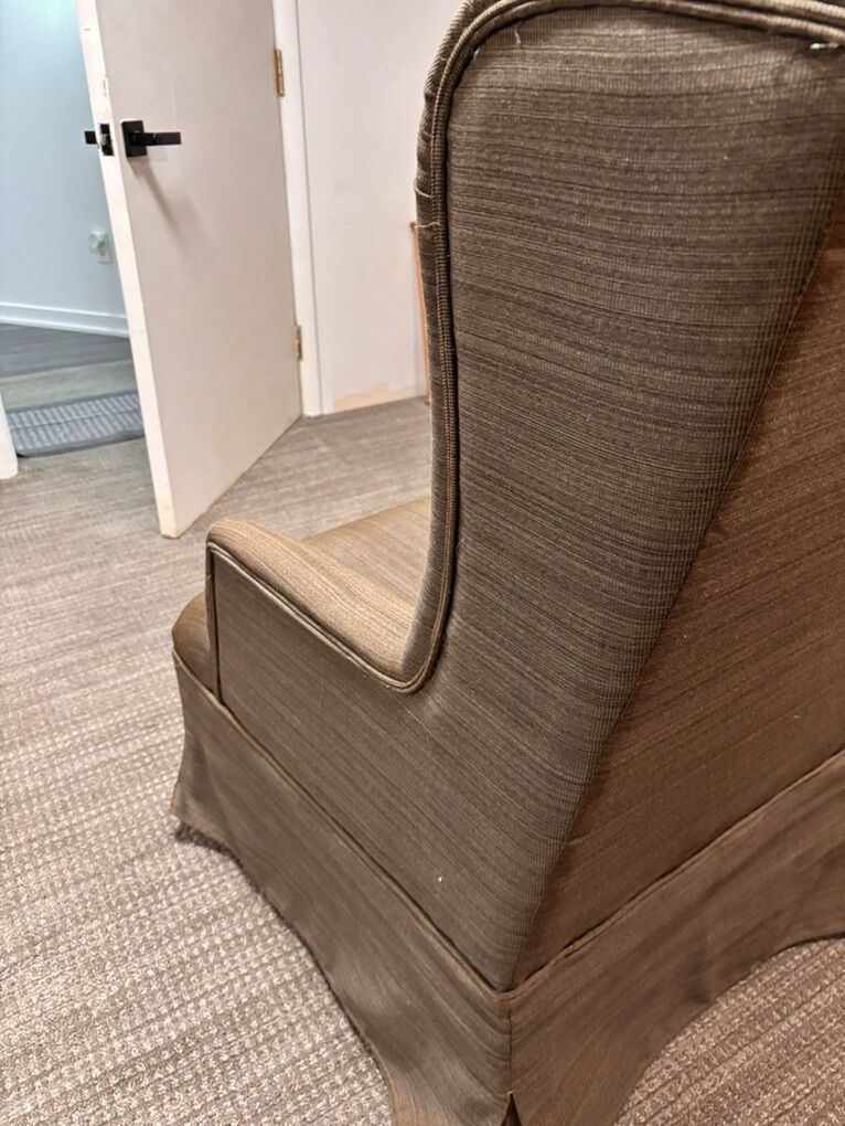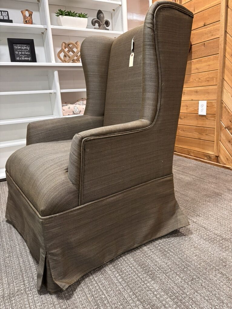 PayPalStylish wingback chair. Has a nice brown/gray textured fabric. Comes with a skirted base. Great for a cozy reading nook or living room. Retail $320 - asking $125