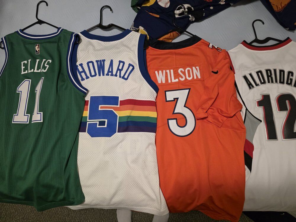 CashAppFor sale are 4 jerseys. Monta ellis throwback Dallas Mavericks jersey, a throwback Juwan Howard Denver nuggets jersey, a Russell Wilson denver broncos jersey, and a Portland trailblazers lamarcus Aldridge jersey. All in good condition, there is a little stain on the nuggets jersey on the back. Asking 40.00 for the lot. if you are interested give me a text and thank you for looking.