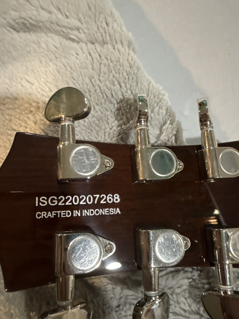 There is one small cosmetic finish ding on the body (pictured), otherwise very clean with normal light wear. Recently cleaned and ready to play. No Bigsby.