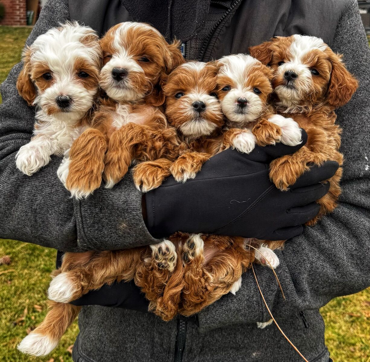 VenmoThis handsome boy is looking for his forever home! He is the sweetest little puppy, very mellow and affectionate but still playful. He loves to give kisses and play with our kids and with other puppies. We expect him to be around 7-10lbs full grown he is the smallest boy in his litter. Both his parents are non-shedding multi-generational doodles so he also will not shed.
