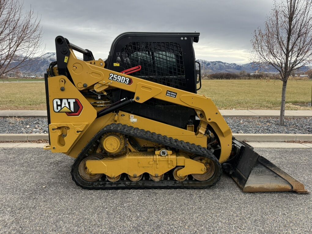 Very clean 2020 Cat 259D3!! This machine is loaded with high flow hydraulics, 2 speed, cab with heat, AC, heated seat, radio, air ride, tinted windows, digital display, hydraulic quick attach etc!! Machine only has 1490 hours on it and the tracks are almost new as well!! Has a 74” cat bucket and is ready to be put to work! Call, message or text Nick 435~760~7737