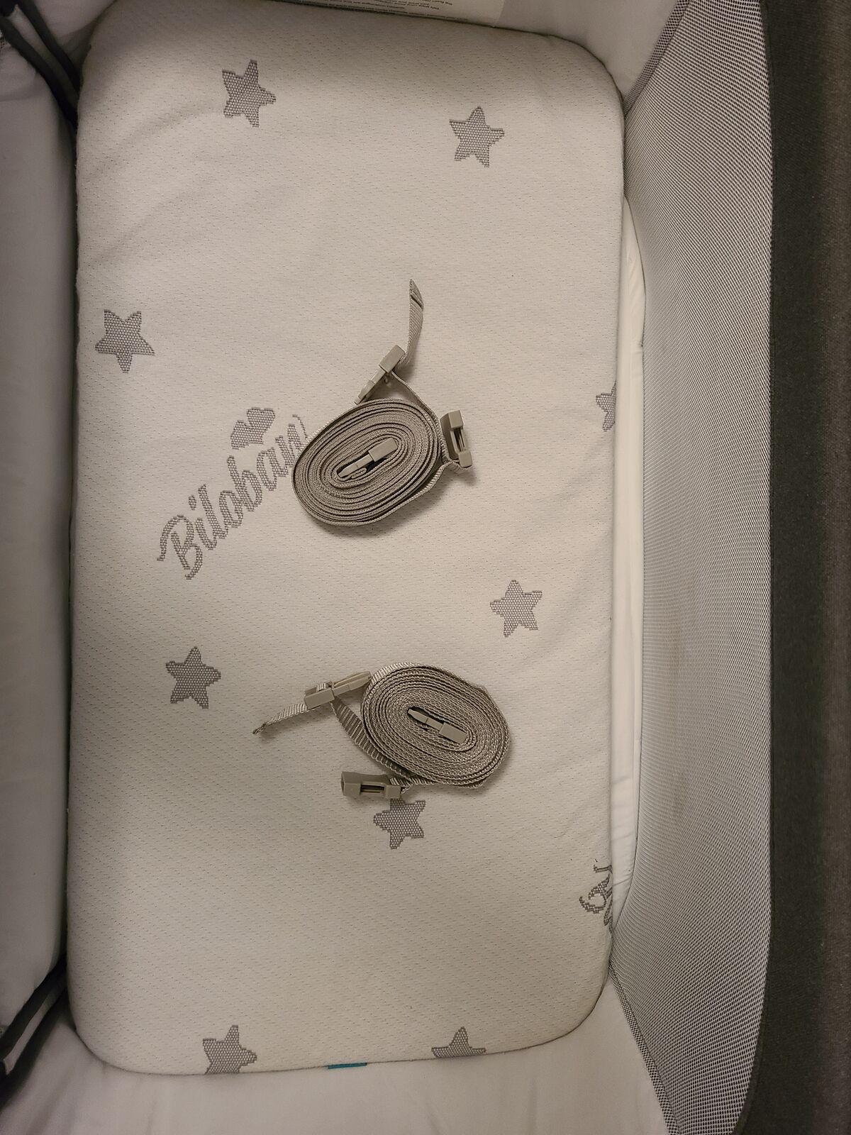 The bassinet has mesh side walls, one side that can be put down when next to the bed. It includes the straps to tie to the mattress for extra security. The height is adjustable and it also includes the pad.