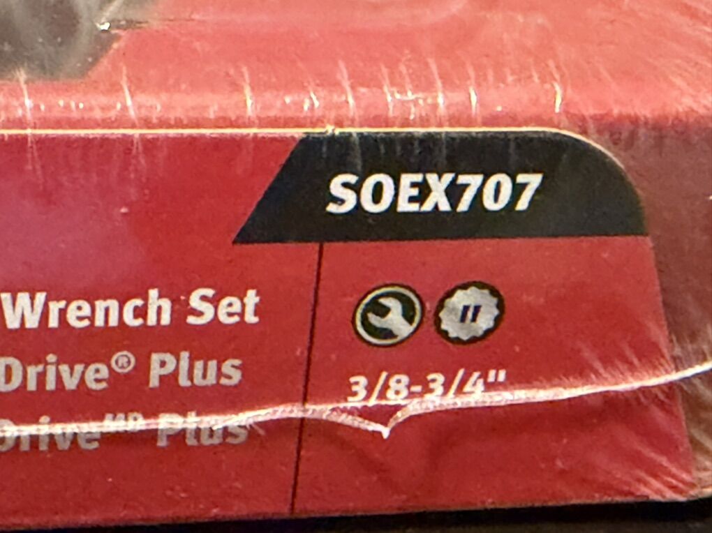 VenmoSnap-On 7 Piece Flank Drive Plus Wrench Set (S0EX707). 3/8 -3/4 inches. It is unopened. The plastic sulfane has a rip in in but the box is not opened or damaged.