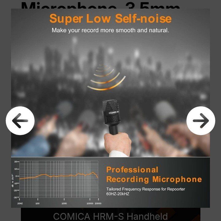 VenmoProfessional Cardioid Condenser Microphone Adopting cardioid sound pick-up technology, Comica HRM-S handheld microphone with a gold-plating capsule can quickly and accurately capture the voice while aiming at the sound source. Versatile Application This reporter microphone has a frequency response range of 60Hz-20kHz, which maximizes the clarity of sound. In addition, the microphone comes with an extra-long 137-inch cable, allowing you to freely move during the recording process. Whether it's for speeches, weddings, or outdoor interviews, it will be your best companion. Super Low Self-noise The built-in multi-layer windshield and full metal construction of this interview microphone allow for clear and natural sound recording. It delivers delicate and professional, non-destructive sound quality while protecting the microphone from surrounding environmental and external signal interference. Specially Designed for 3.5mm TRRS Devices Comica HRM-S wired handheld mic is widely compatible with devices that have a 3.5mm TRRS interface, such as smartphones. It is perfect for interviews, reporting, speeches, church events, weddings, conferences, and more. (Note: If you are an IOS user or an Android USB C interface user, you need the original mic adapter cable) Package List The package includes 1 * microphone, 1 * logo flag, 1 * carry case, 1 * user manual.