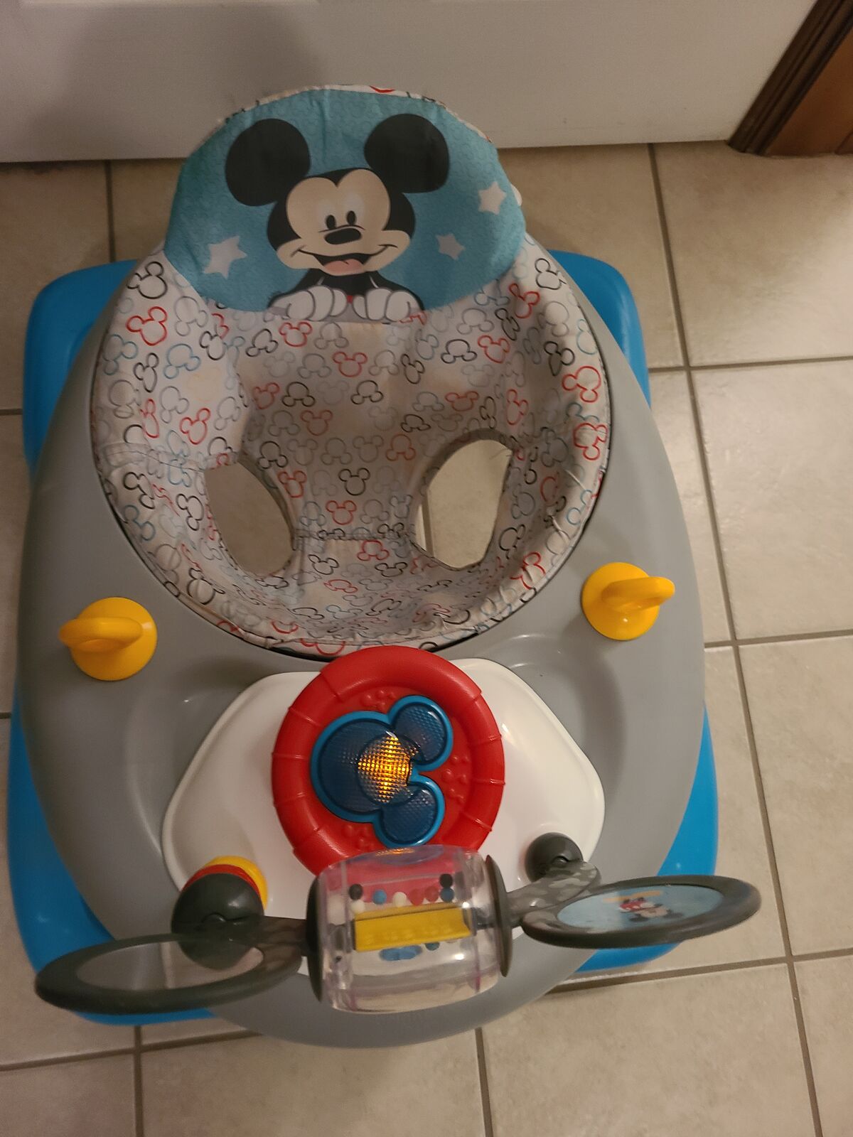 CashAppSteering wheel can come off for a stationary toy. Folds down for easy storage.