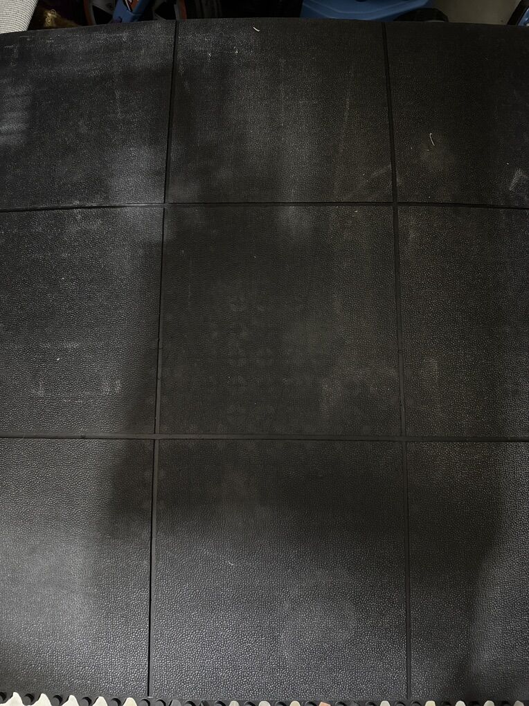 ZelleInterlocking rubber mats that have a faux grout line and a textured finish. We recently bought them and they are new. My wife decided she wants a color added so we got different mats. Normally $45 per mat plus tax and shipping of $400. My loss is your gain! 21 mats available