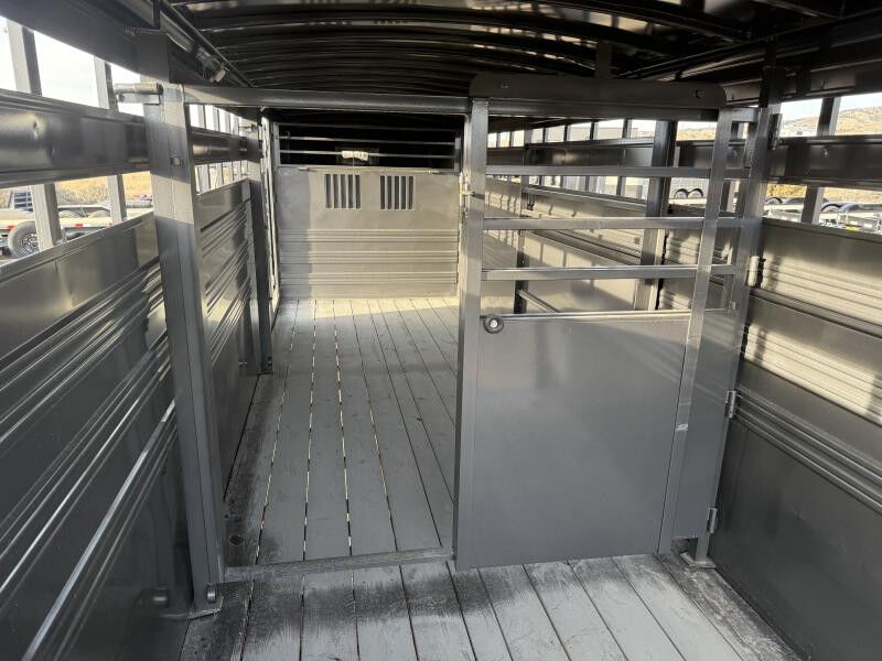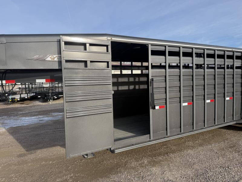 The Titan Standard Stock, our best-selling stock trailer has been the industry benchmark for years. With a vast array of standard features and available options to make it your own, it's easy to see why. Heavily reinforced for maximum durability the Standard Titan comes with 16" on center Tubular uprights. This particular trailer is equipped with two front facing slide vents for extra ventilation that your livestock are sure to appreciate! Setting the bar for livestock trailers since 1973, The "Standard" Gooseneck Titan Trailer.