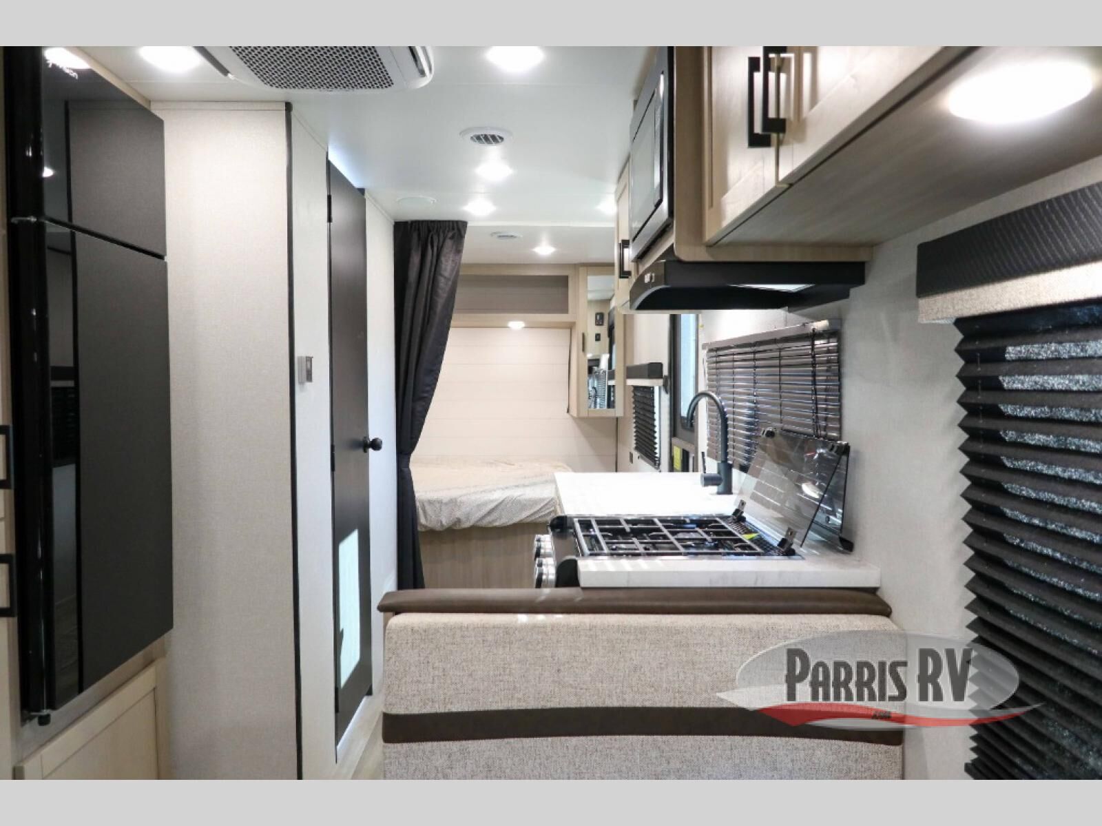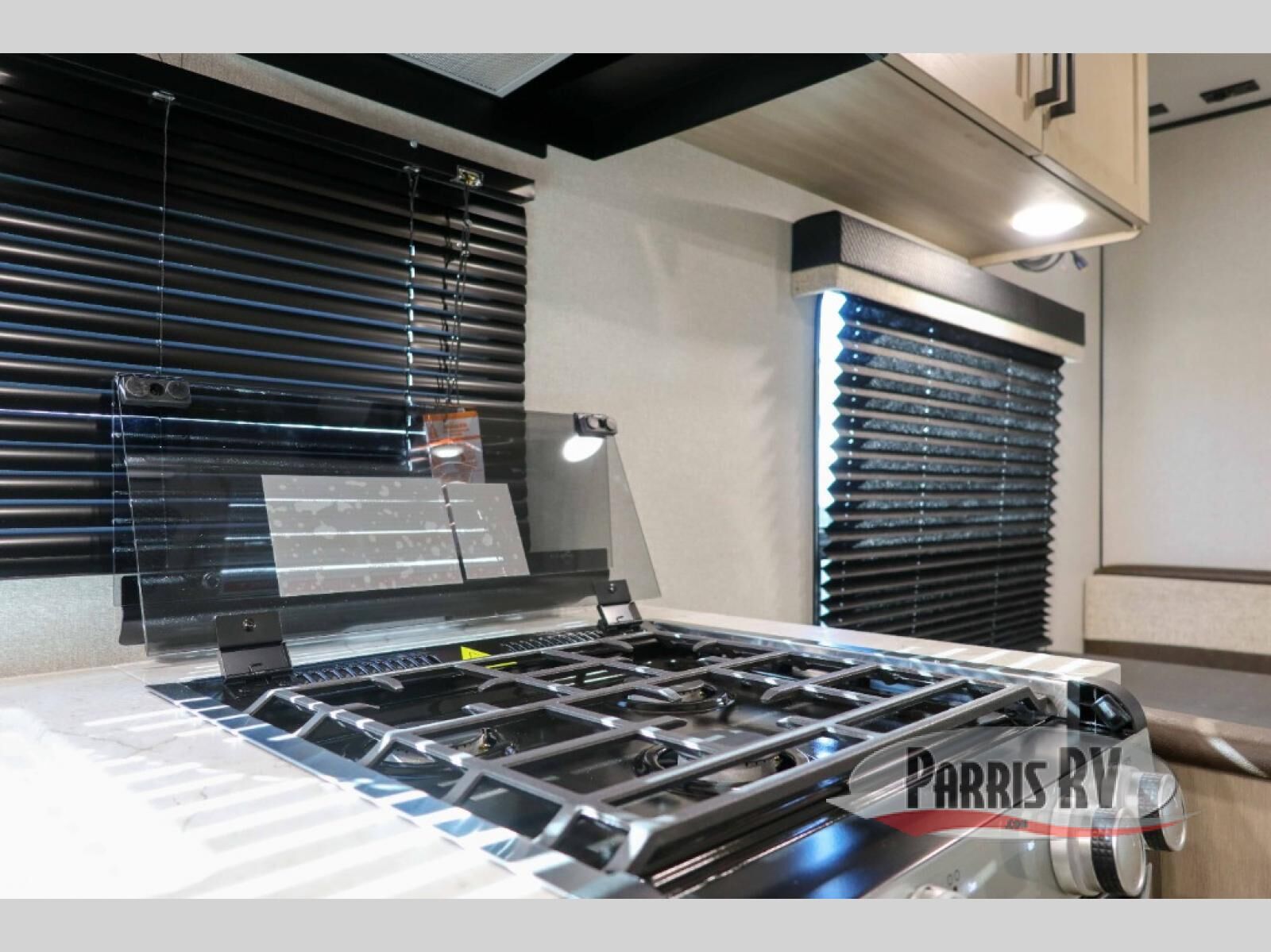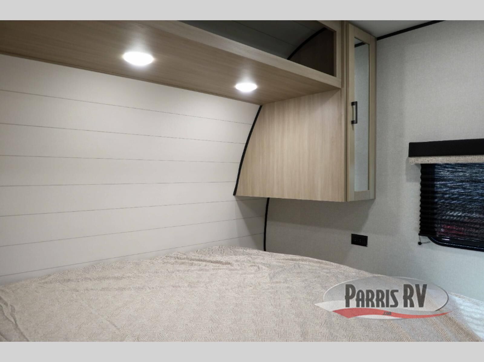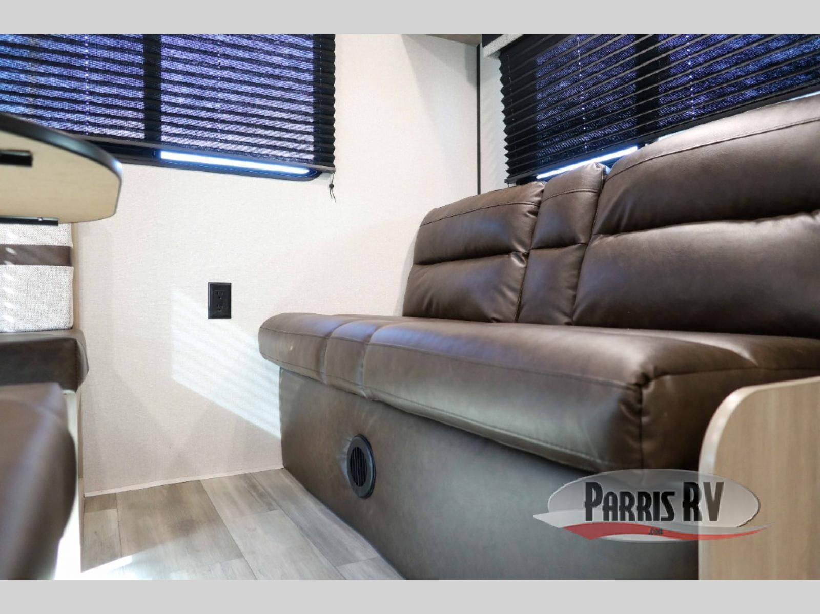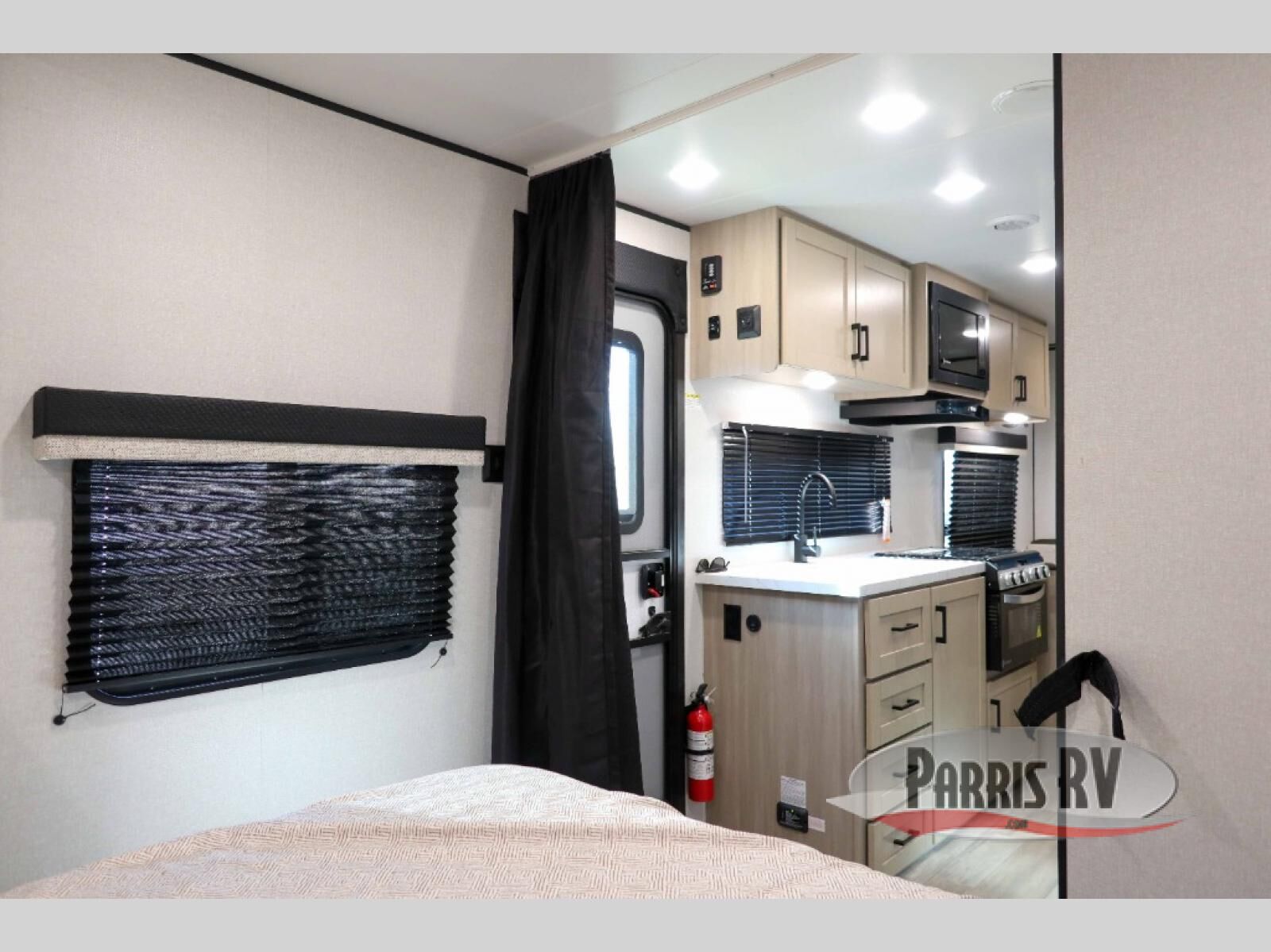 Weekend trips to the campground will be made unforgettable in this travel trailer for five to six. You will enjoy your own space in the front bedroom with a privacy curtain, RV queen bed and dual bedside wardrobes to keep your things tidy. If you have any guests staying over, then can convert the jack knife sofa and booth dinette back into seating spaces for breakfast in the morning. Speaking of breakfast, you'll have a three-burner cooktop and microwave oven to cook eggs and bacon, plus an 8-cu. ft. 12V refrigerator and pantry for food storage.