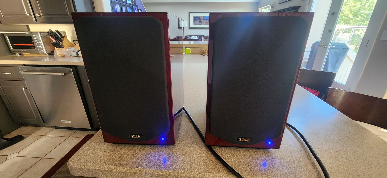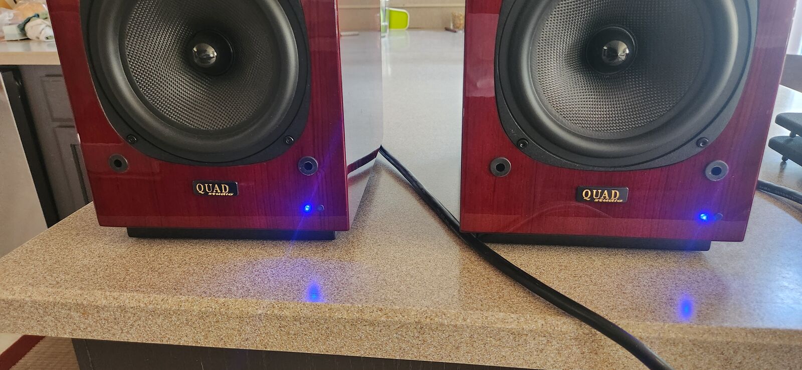 These speakers have that smooth Quad 'house sound', but have suprisingly good bass slam due to being active. Bass seems to go deeper than their passive counterparts IMO.