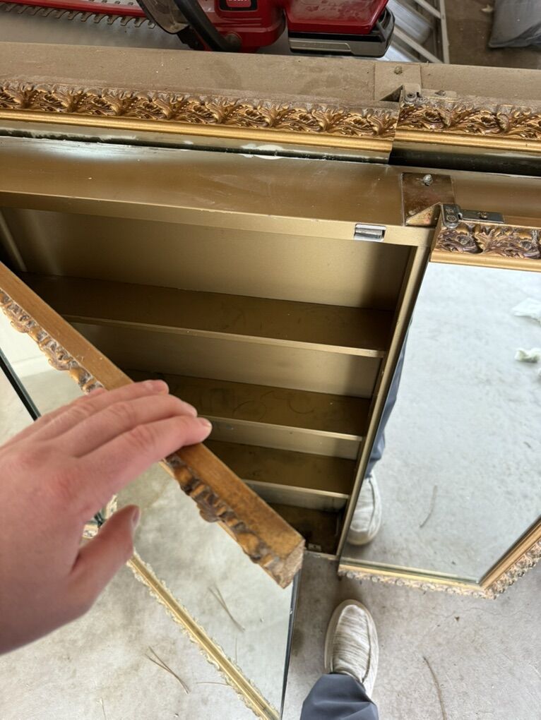 VenmoI have two gold vintage wall mounted mirrors with cabinet storage. Inside has three shelves. Dimensions are 49 1/2” wide, 37 1/2” tall and 5 1/2” deep. Both are in good conditions. Selling each for $200 or both for $300.