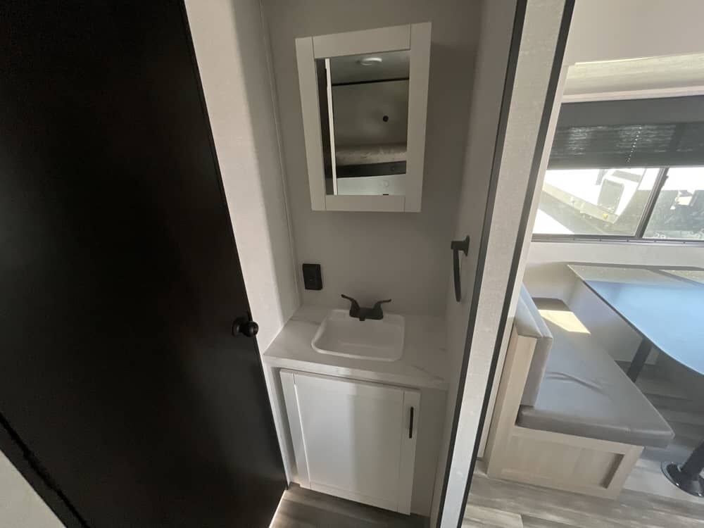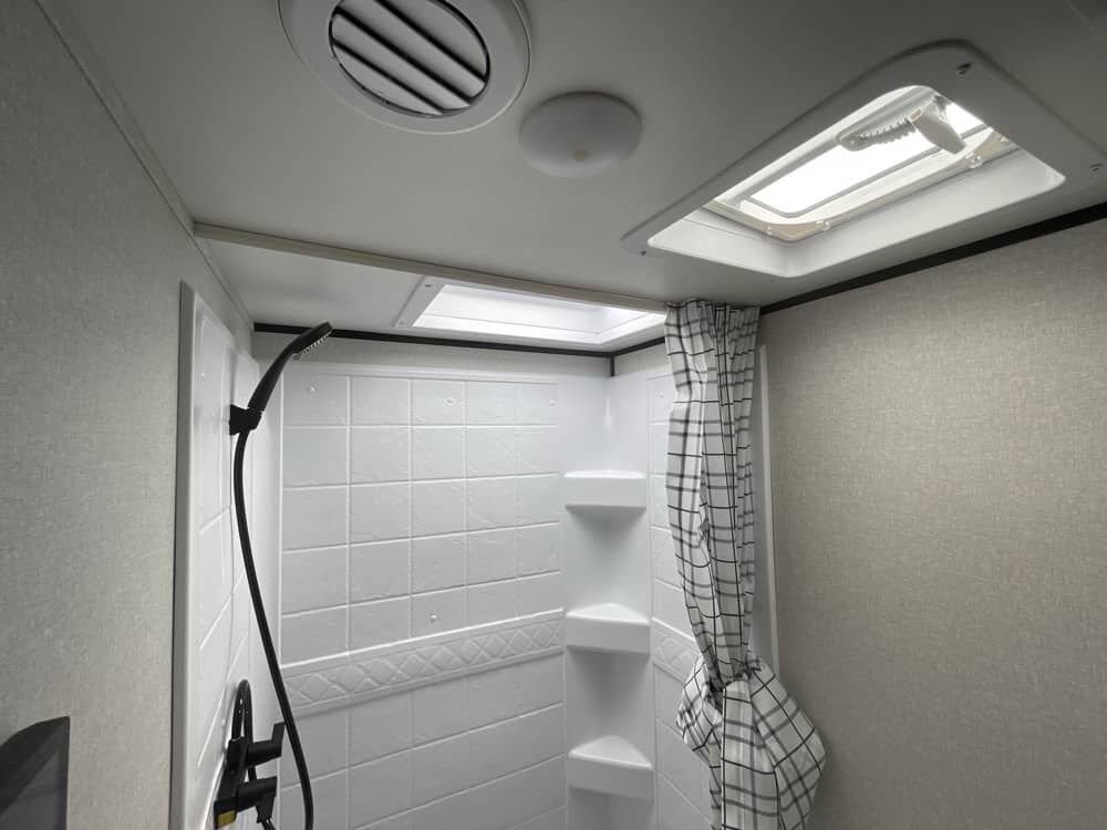 After a long day of exploring, step inside to enjoy instant hot water from the on-demand tankless water heater—up to 60,000 BTU in standard models and 42,000 BTU in the Sport Edition—so you can clean up comfortably, just like at home. Oversized G20 dark-tinted windows flood the space with natural light while blocking heat and UV rays, giving you both stunning views and added privacy.