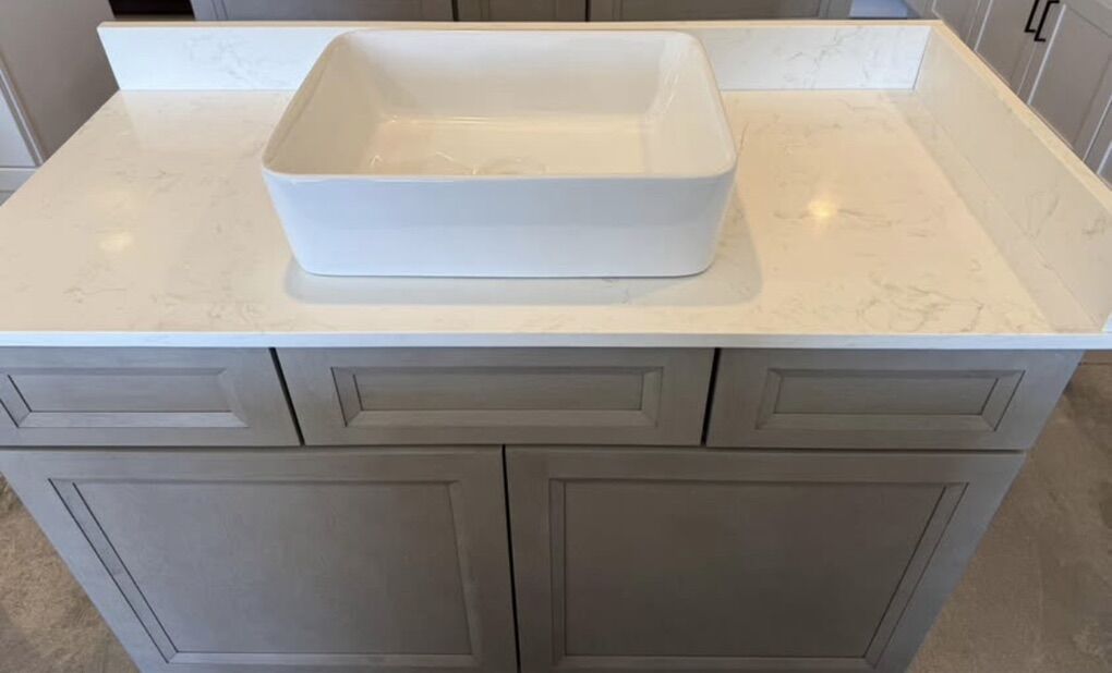 Comes with… • Quartz Countertop • Vessel sink • 4” Backsplash w/ 4” Sidesplash • Cabinet w/ 2 drawers and 2 doors • Real Wood • Soft Close drawers and doors