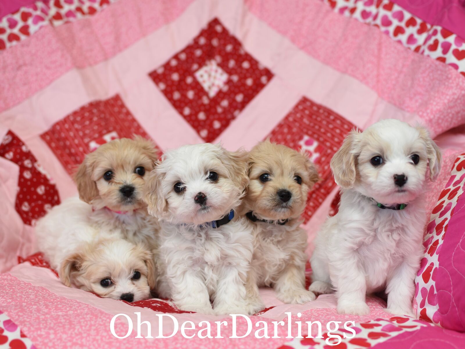 ZelleWe have a litter of beautiful cavachons who are looking for their forever homes! Our Bichon Frise Ida gave birth to two girls and three boys. These puppies are the perfect family pet bringing out the best of both King Charles Cavalier and Bichon Frise breeds. They are energetic and playful while also enjoying cuddle time. They quickly learn commands and are very obedient. These puppies have been doing great working on potty training and are sleeping through the night. They are raised in our home around children, other dogs, cats and many everyday loud noises and experiences which makes for an easy adjustment from our home to yours. Both parents are AKC registered. They will have all been to the vet and will have their first vaccines and a health check. They will be ready to head off to their new home anytime after February 5th. They are being sold with no breeding rights. We are happy to answer any questions you have! Please feel free to check out our website at ohdeardarlings.mypixieset.com Cecil - available (male) Leopold - SOLD(male) Olivia - (female) Benedict - availavle (male) Pinky - SOLD (female)
