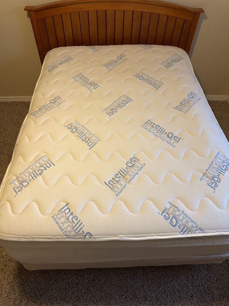 VenmoSlatted solid wood headboard measures 44”H x 62.5” W The full-sized/double mattress set was made by Heirloom Imperial. It has always been protected by a mattress protector and is clean. It was located in a spare bedroom and probably only slept on 4-5 times. Comes from a clean, smoke and pet free home.